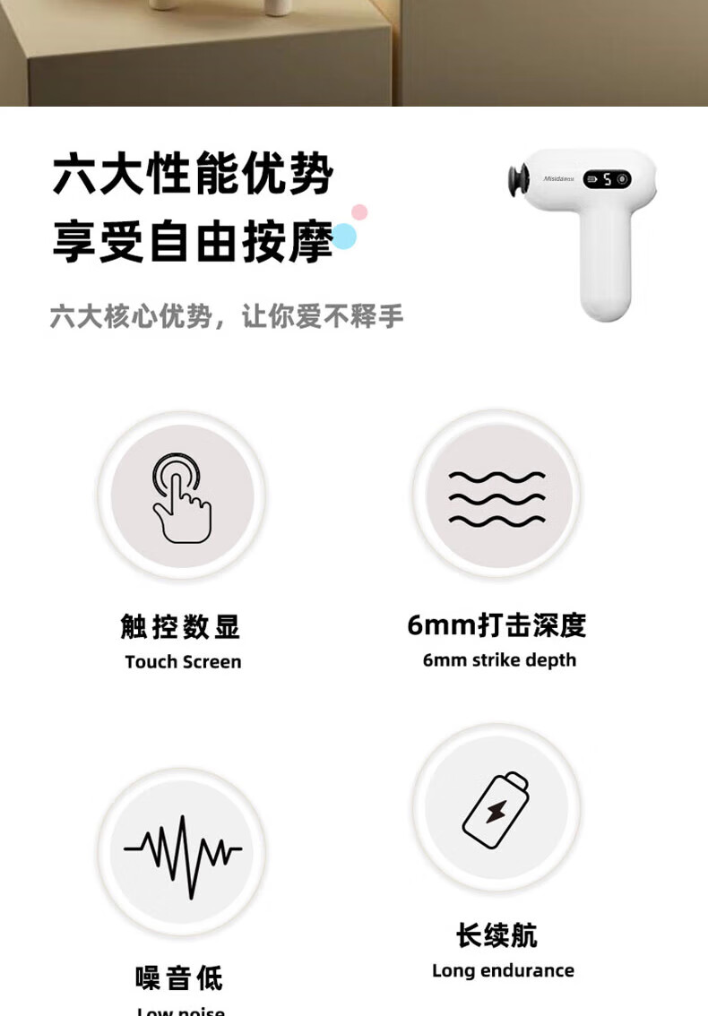 Misida美仕达筋膜枪按摩器专业级迷你便携式MS-J06 白色