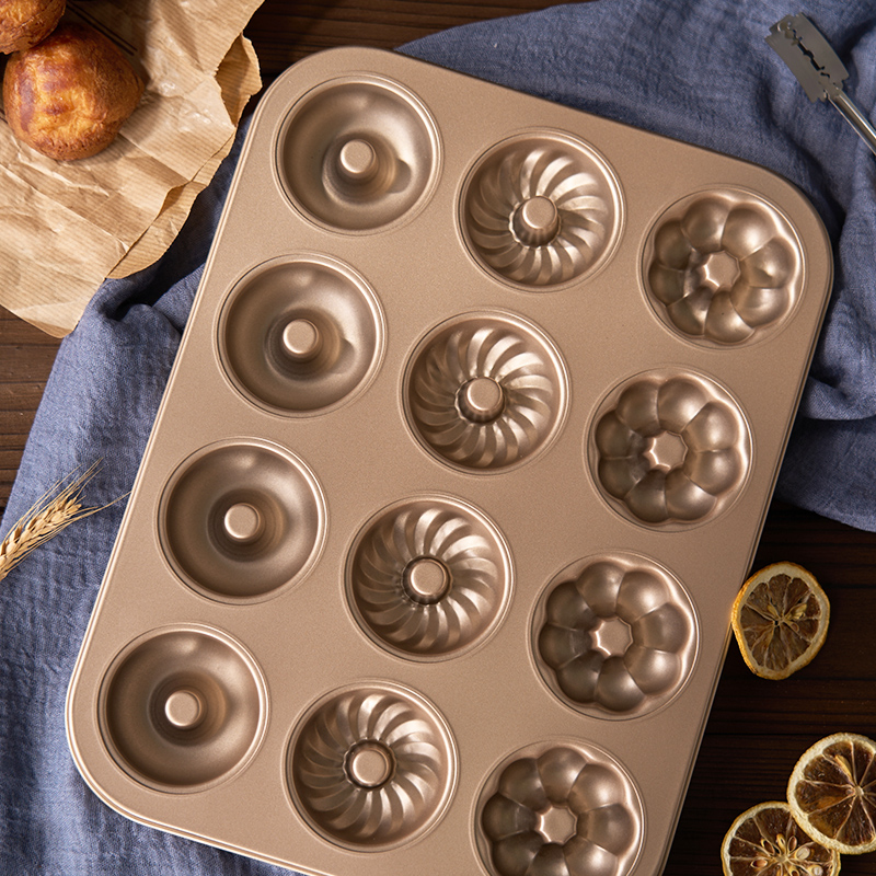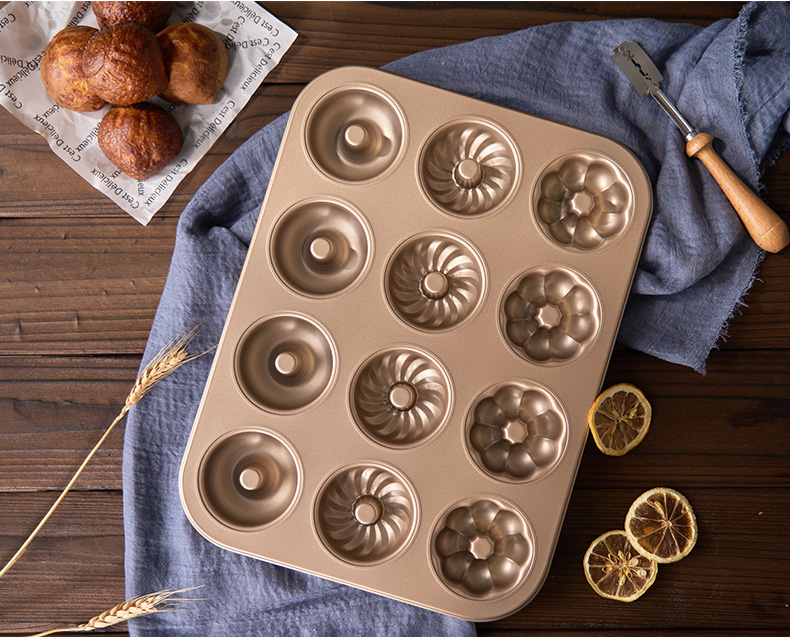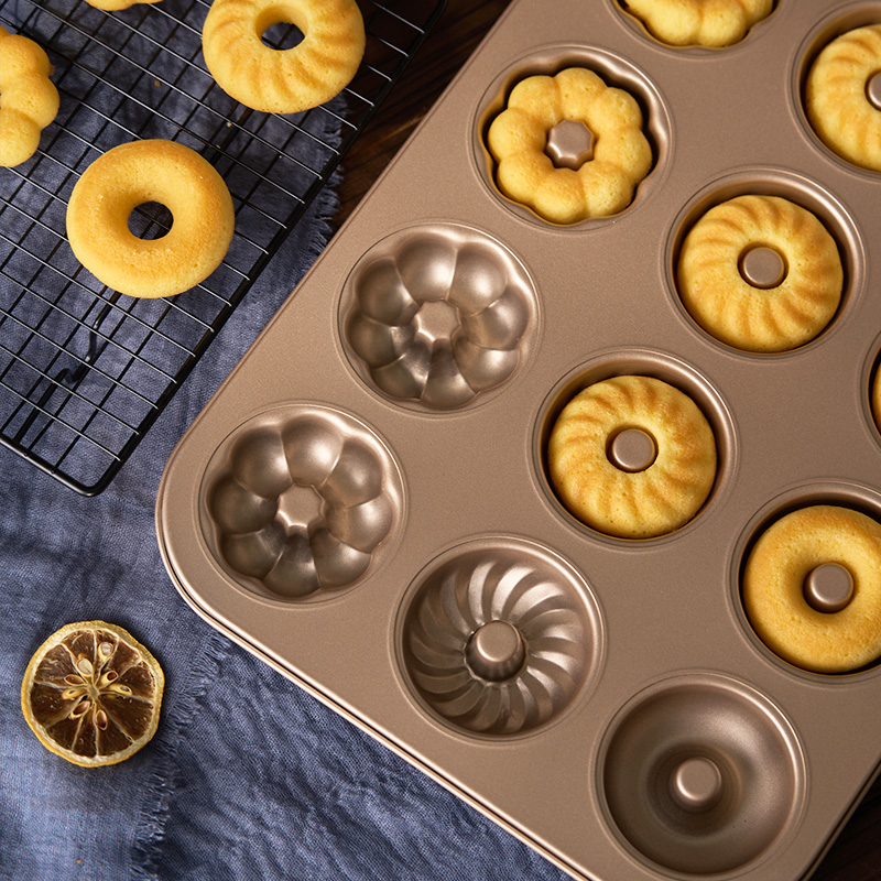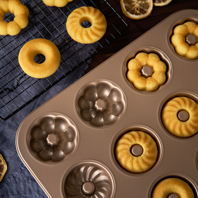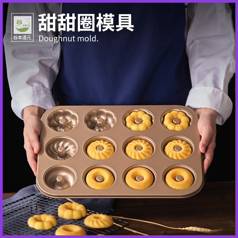 (特)甜甜圈模具12连空心烤盘玛德琳黄油年糕家用不粘曲奇烘焙烤箱专用