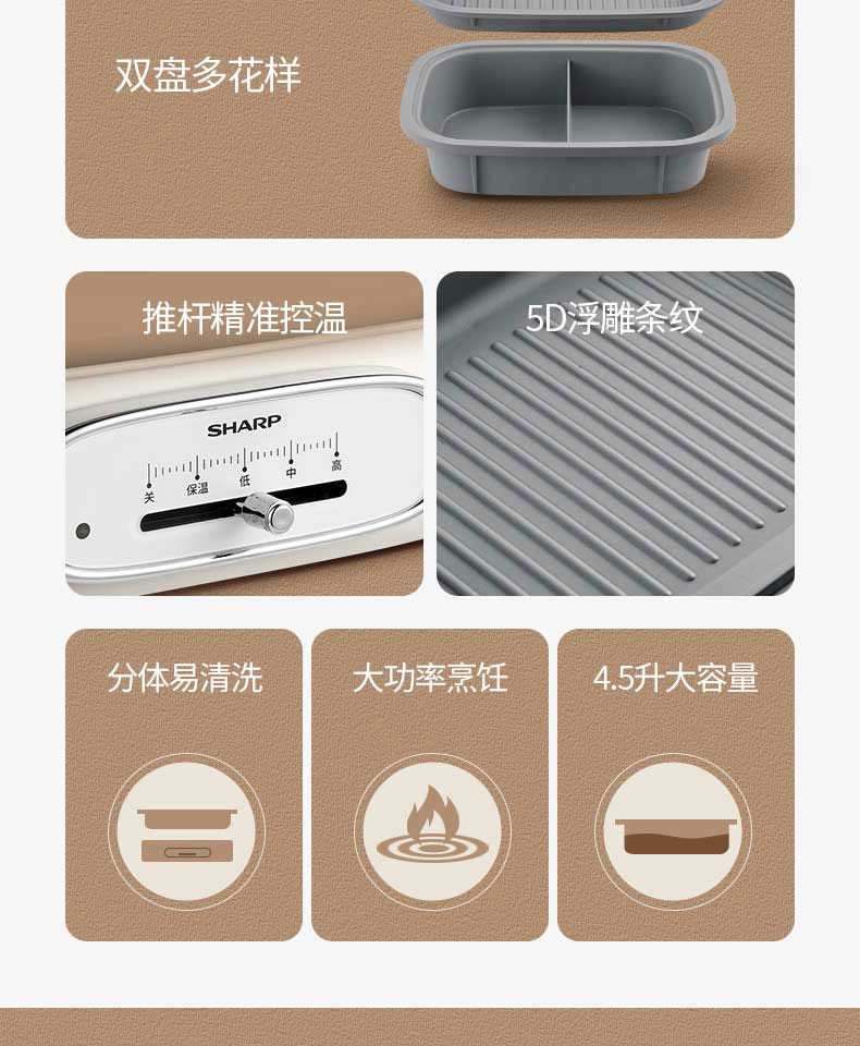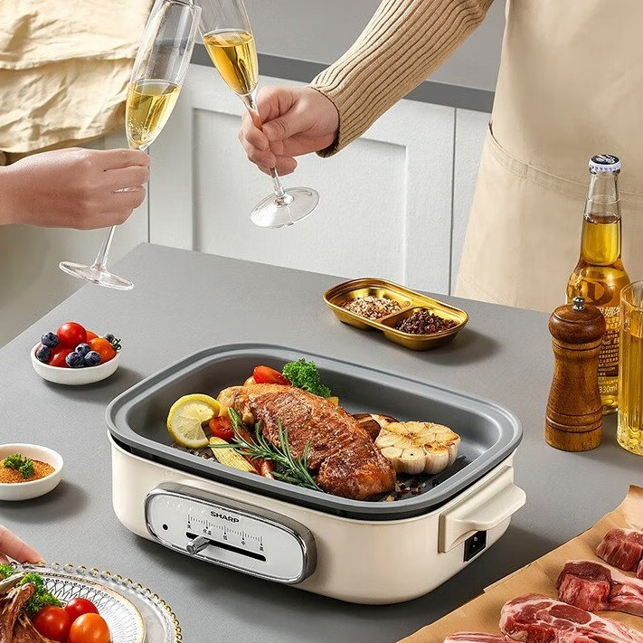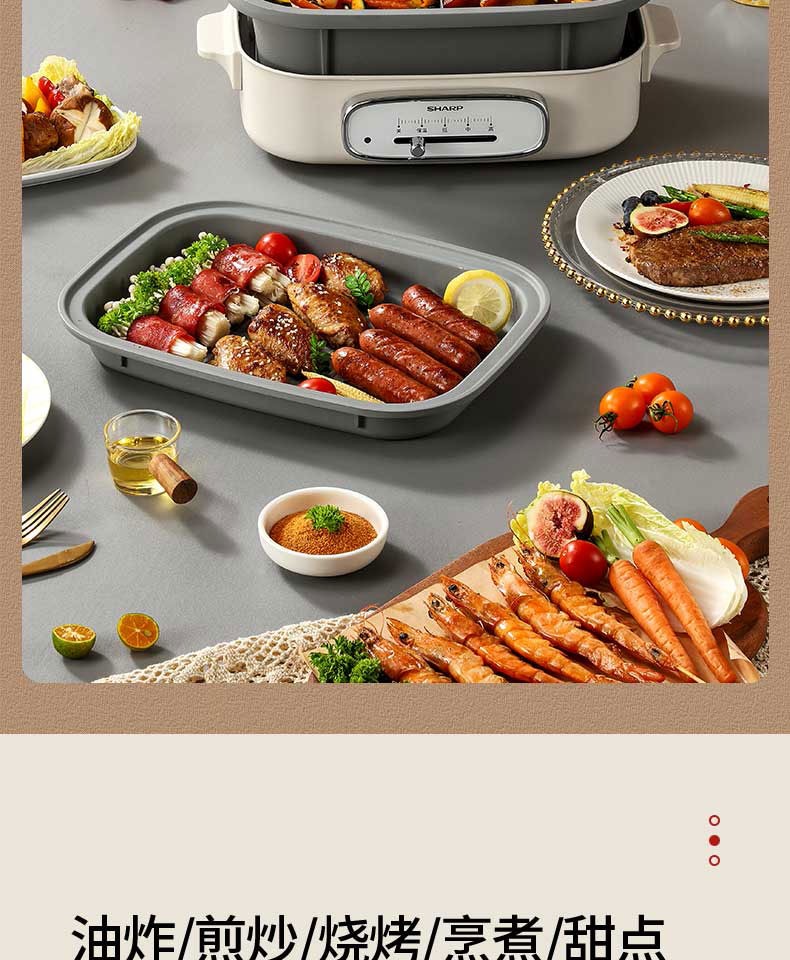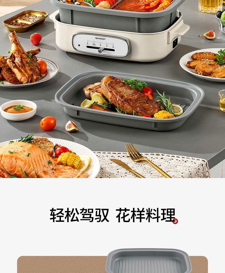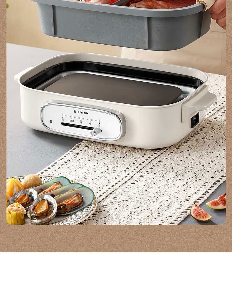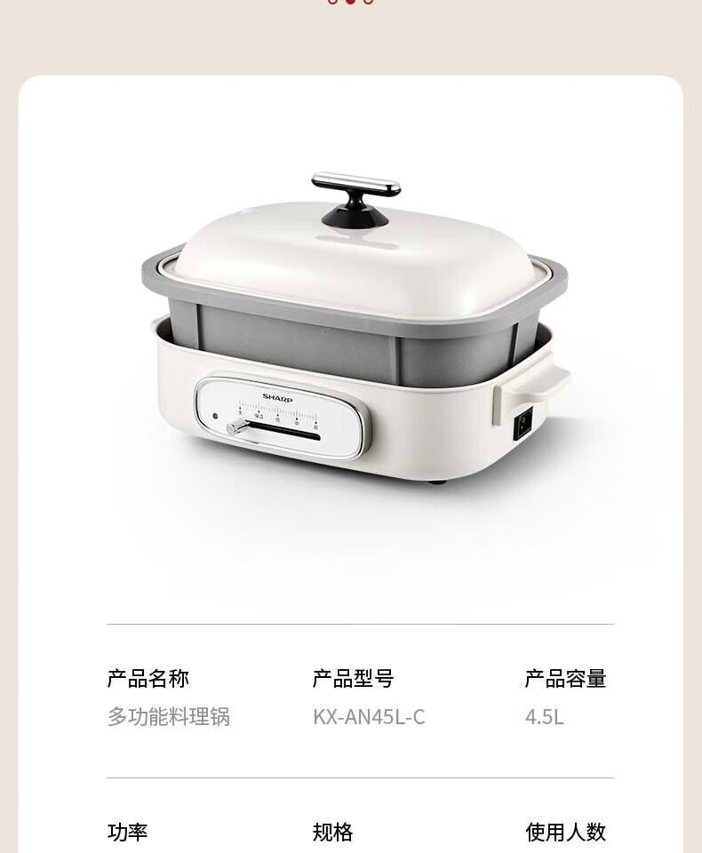 夏普多功能料理锅家用电火锅4.5L电蒸锅电炒锅多用途锅烤鱼锅KX-AN45L-C 4.5L