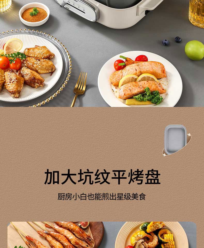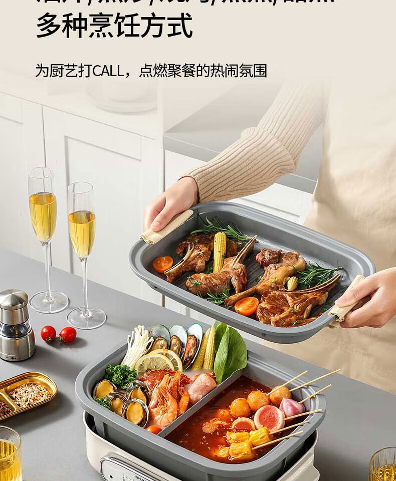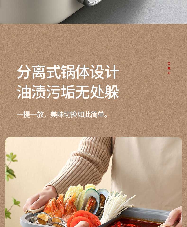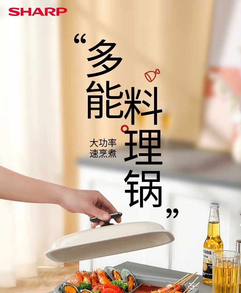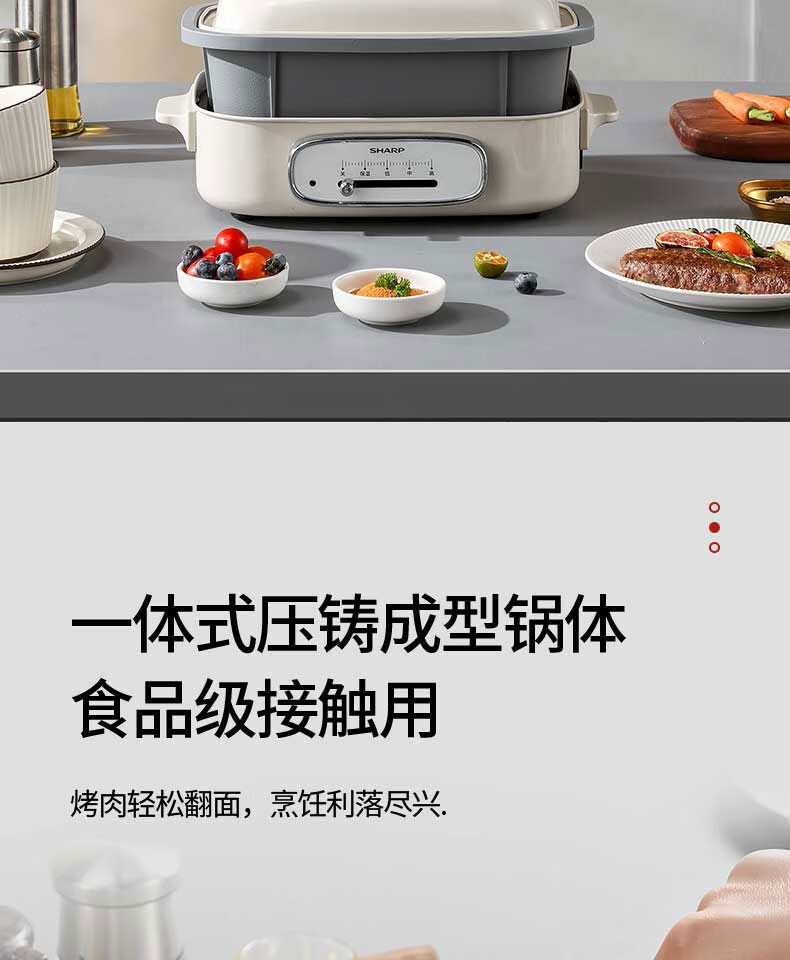 夏普多功能料理锅家用电火锅4.5L电蒸锅电炒锅多用途锅烤鱼锅KX-AN45L-C 4.5L