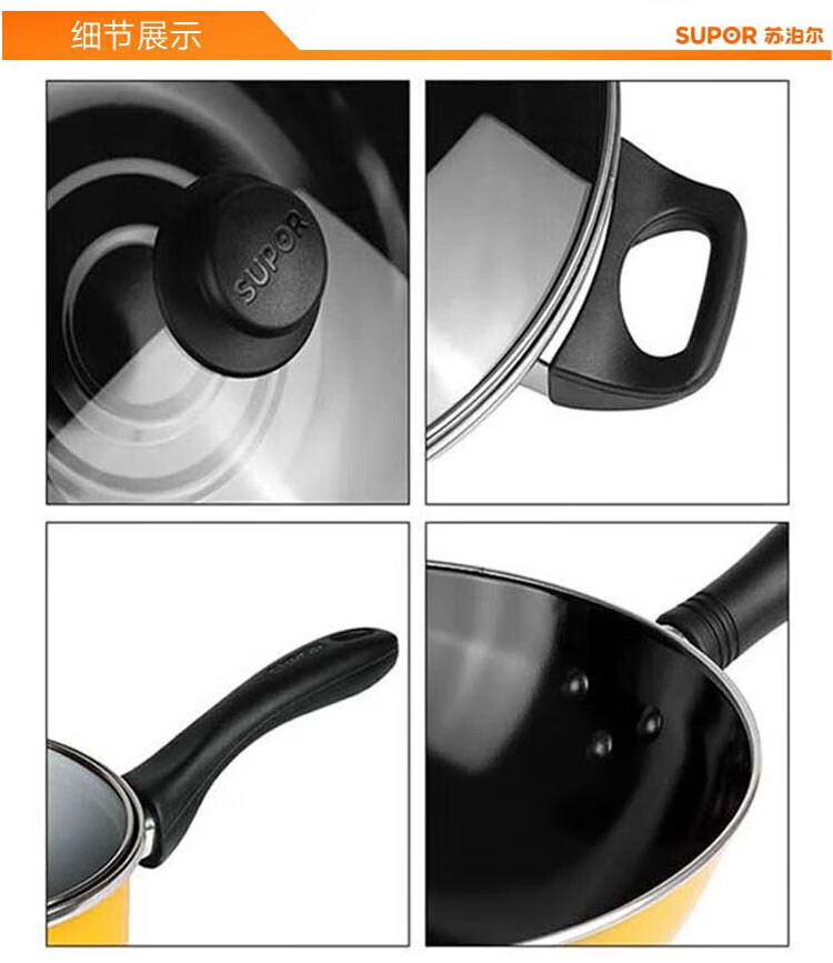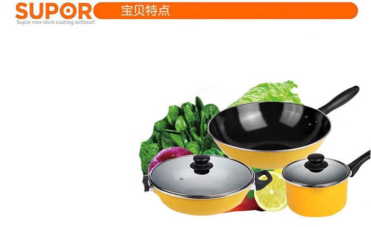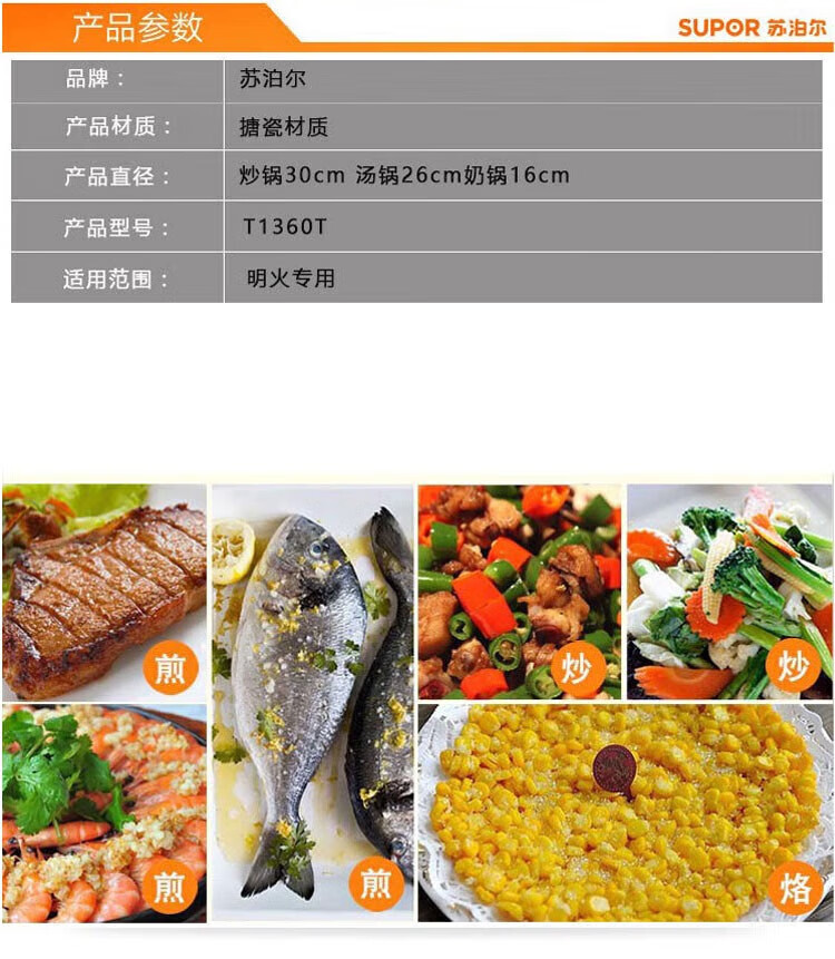 苏泊尔温馨之家三件套30CM炒锅26CM汤锅16CM煎锅燃气专用锅具套装T1360T