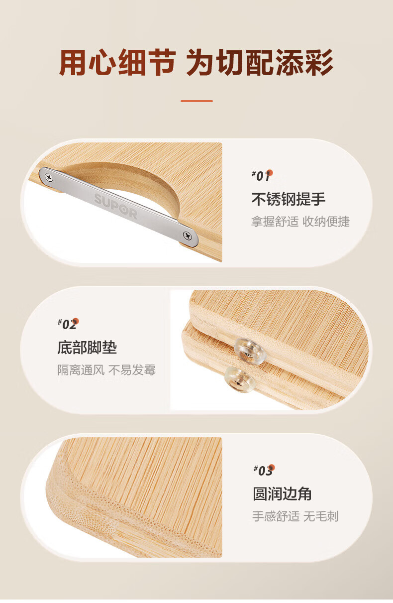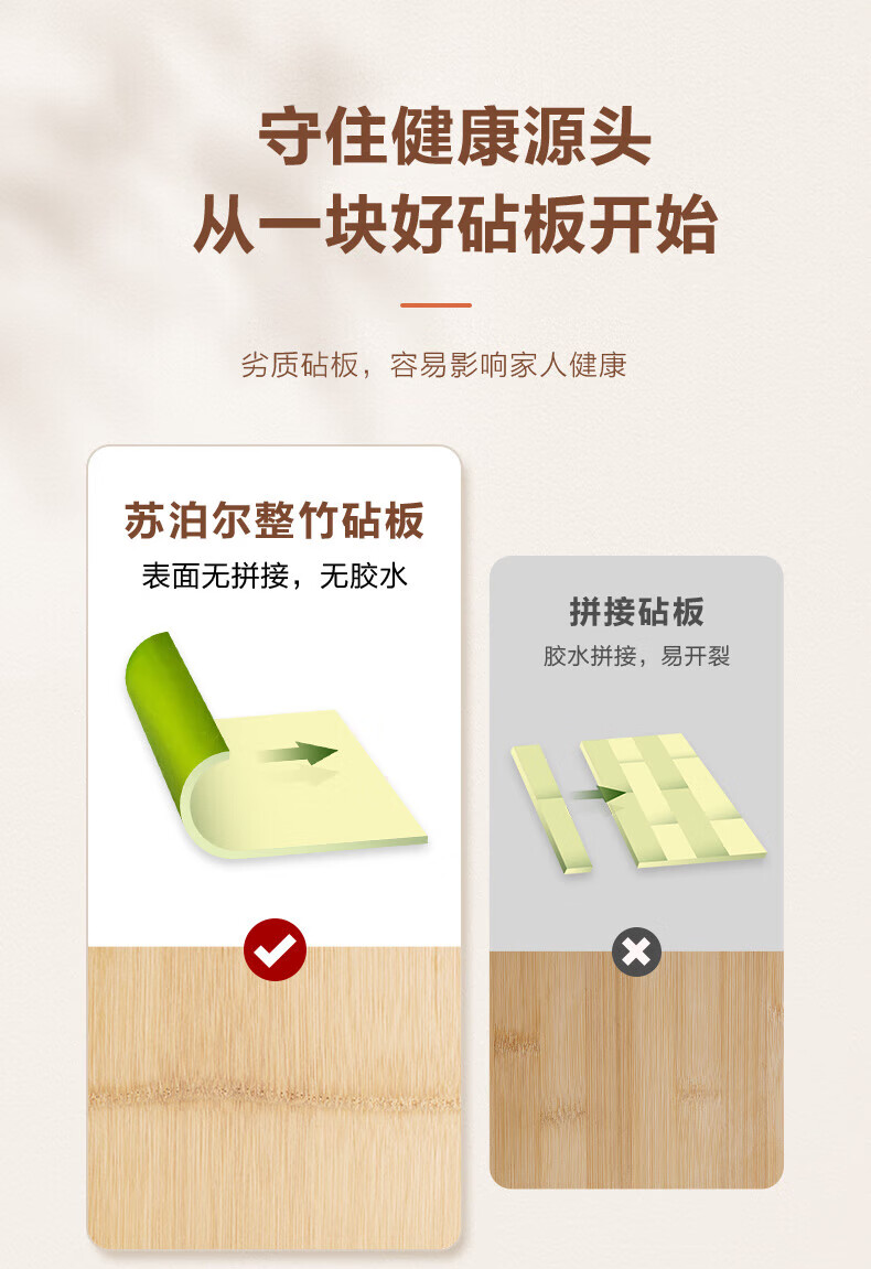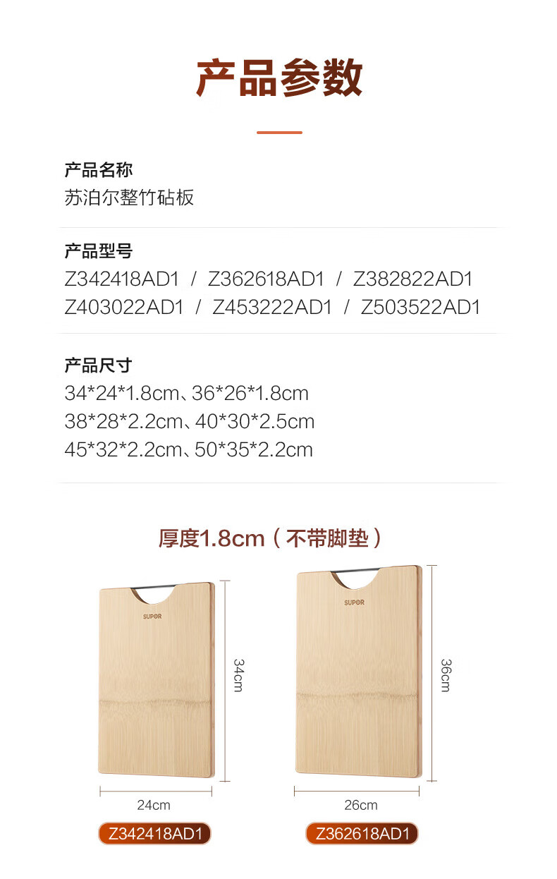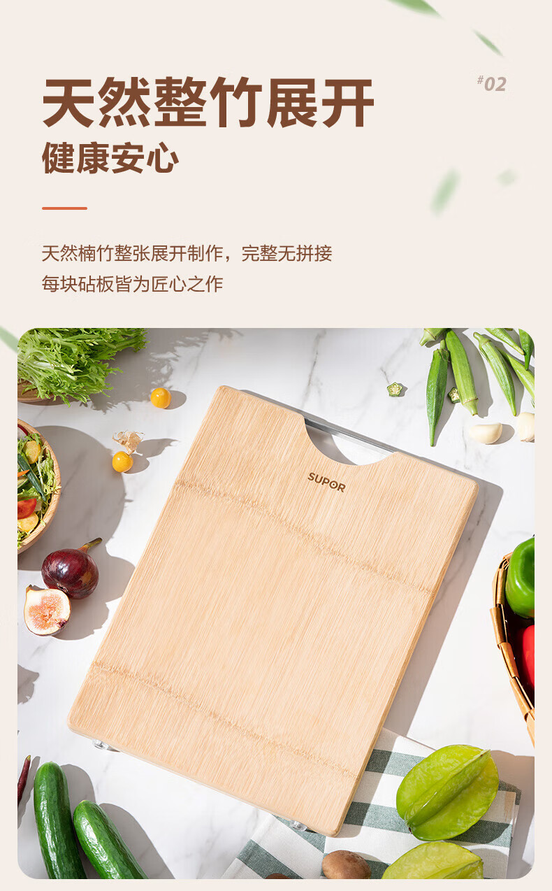 苏泊尔菜板砧板竹木整竹加厚切菜板 38*28*2.2cm-Z382822AD1