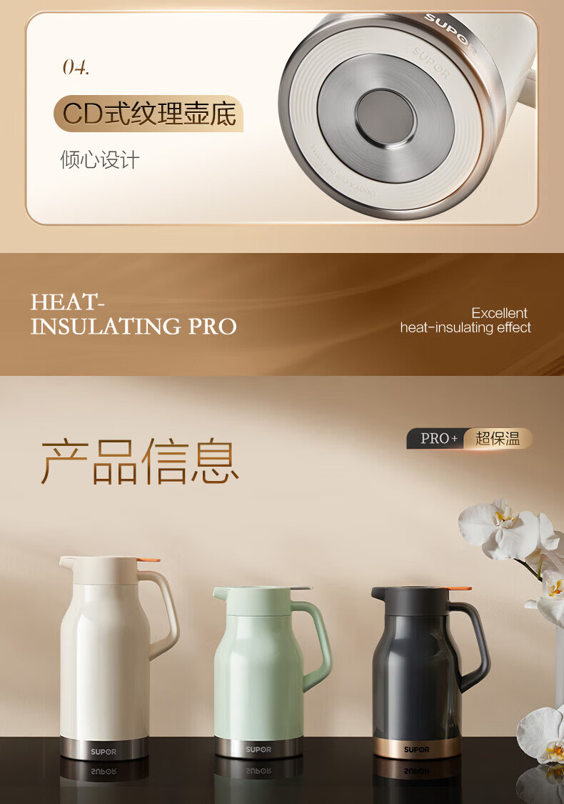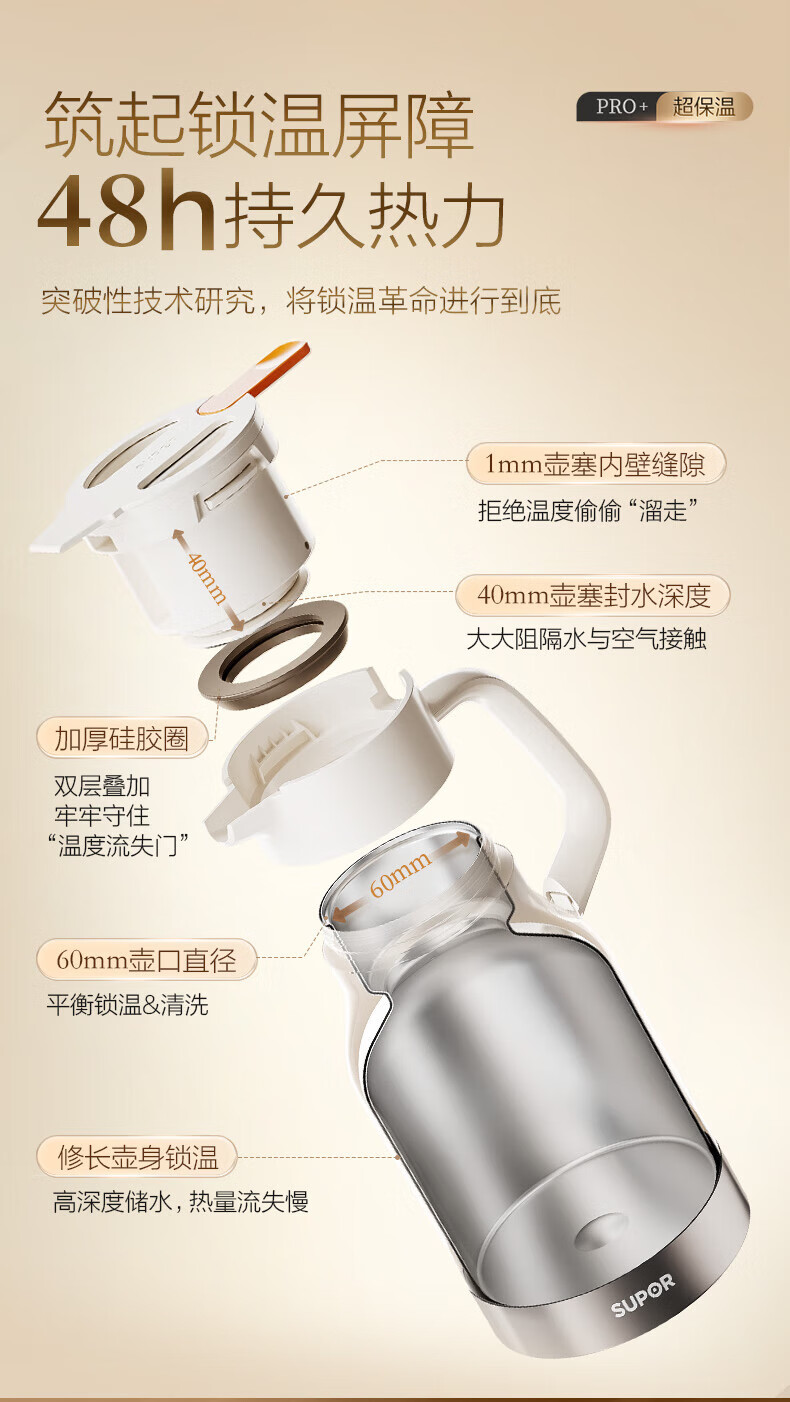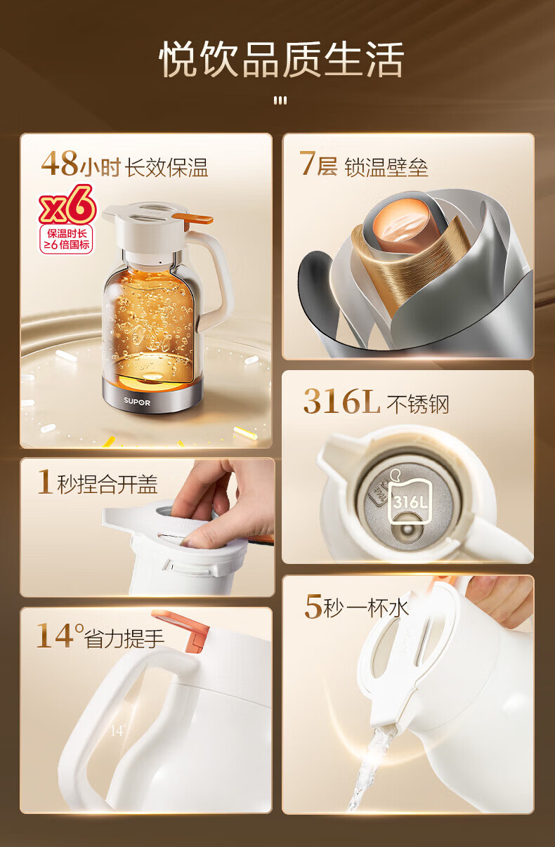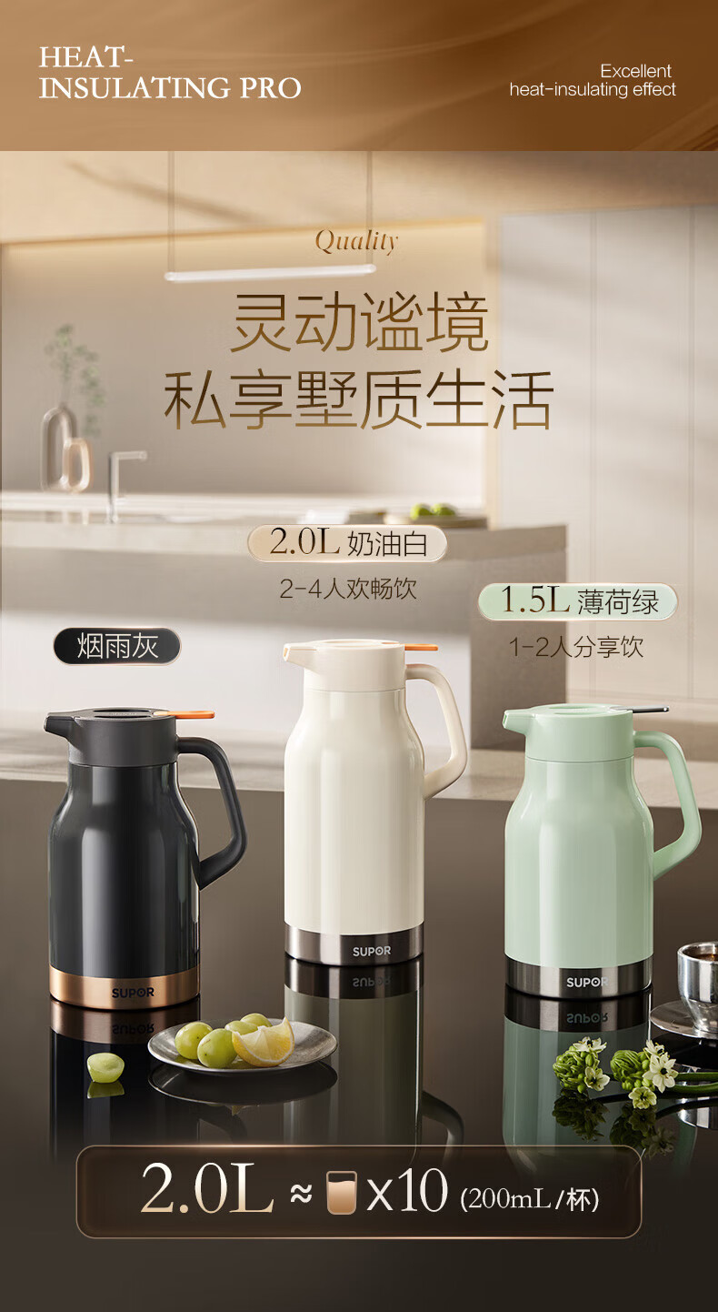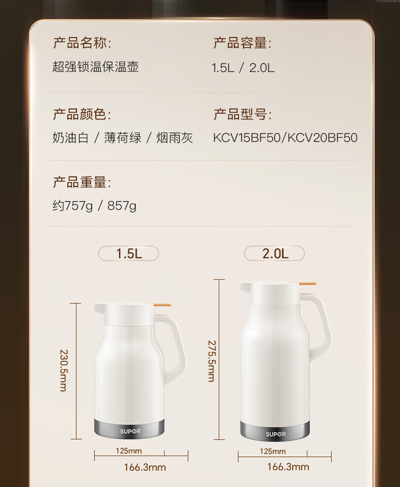 苏泊尔超强锁温保温壶 烟雨灰/KCV15BF50
