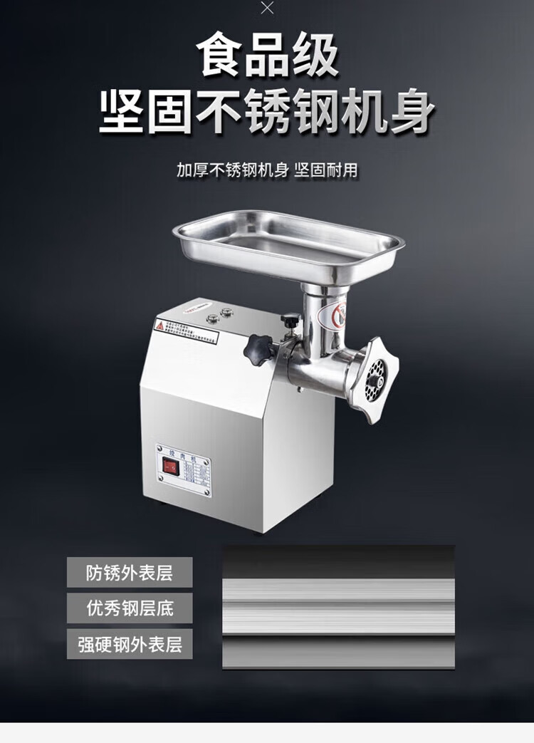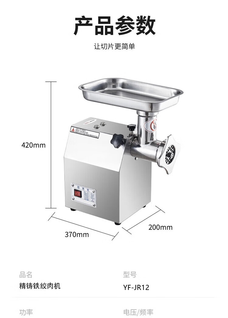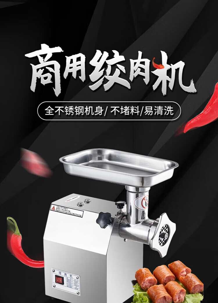 史蒂芬商用台式不锈钢电动12型800W大功率绞肉机YF-JR12