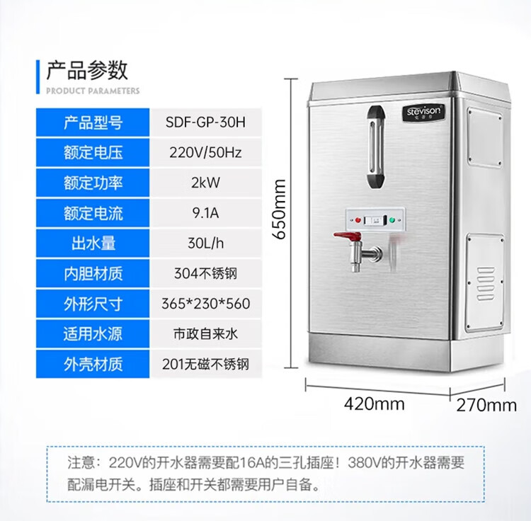 史蒂芬商用大容量热水器饭店酒店食堂不锈钢水箱 2kw发泡款不含安装SDF-GP30H