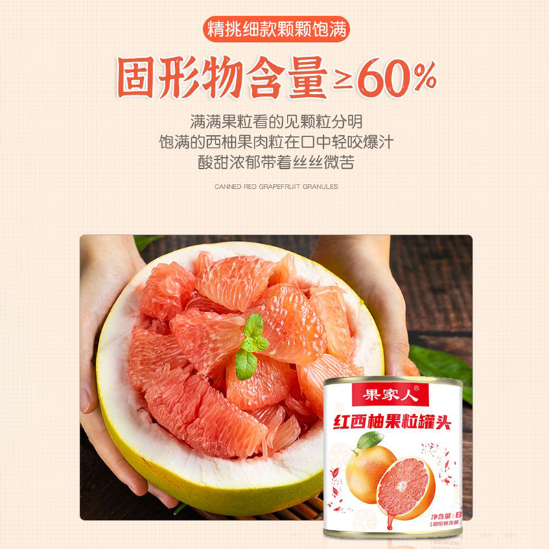 (特)红西柚果粒罐头商用杨枝甘露原材料奶茶店新鲜水果肉颗粒大罐850g