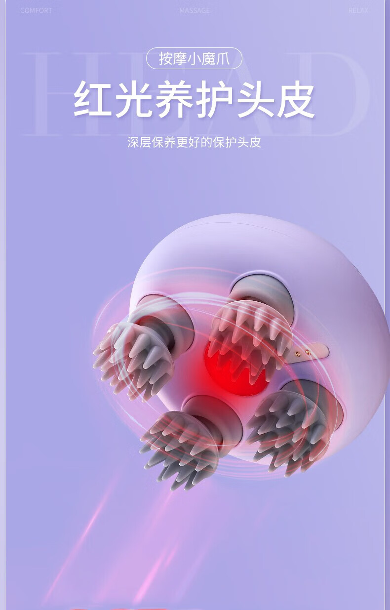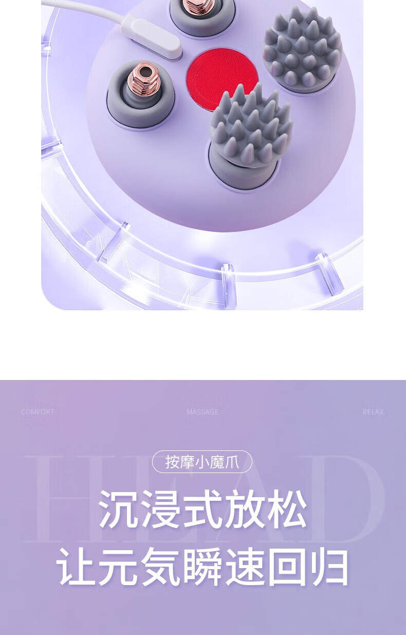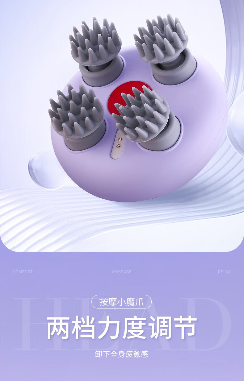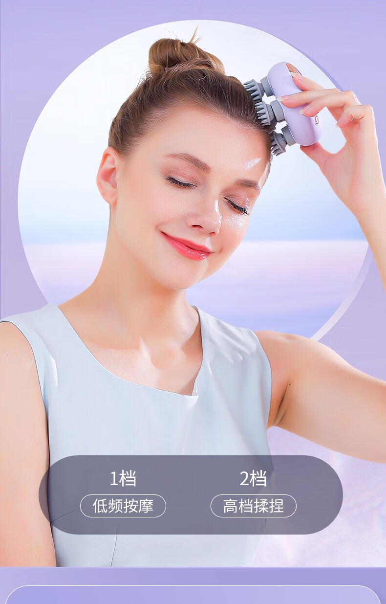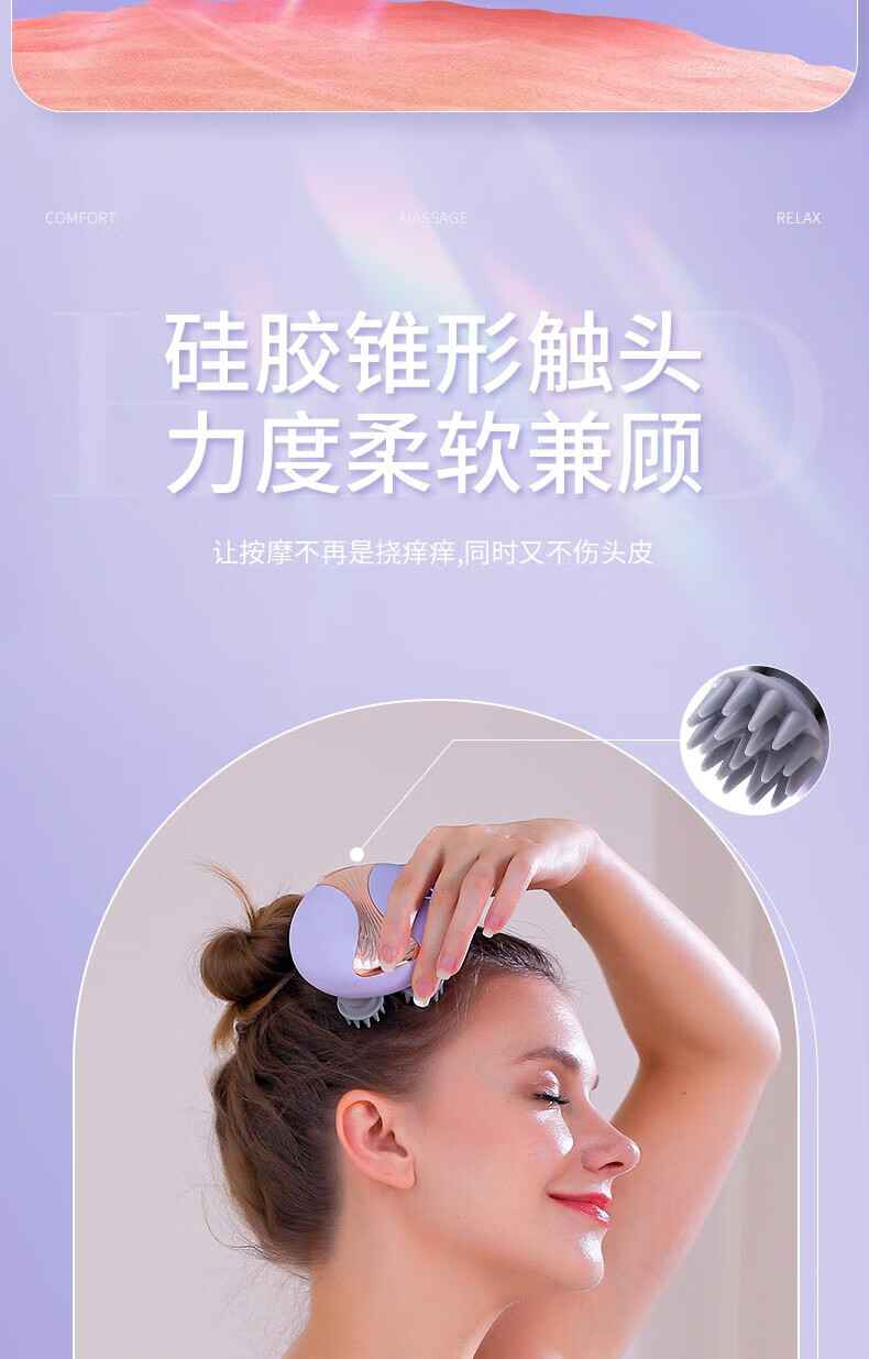 美仕达(Misida)头部按摩器头皮按摩仪头发护理无线充电按摩器 MS-T03粉色/紫色
