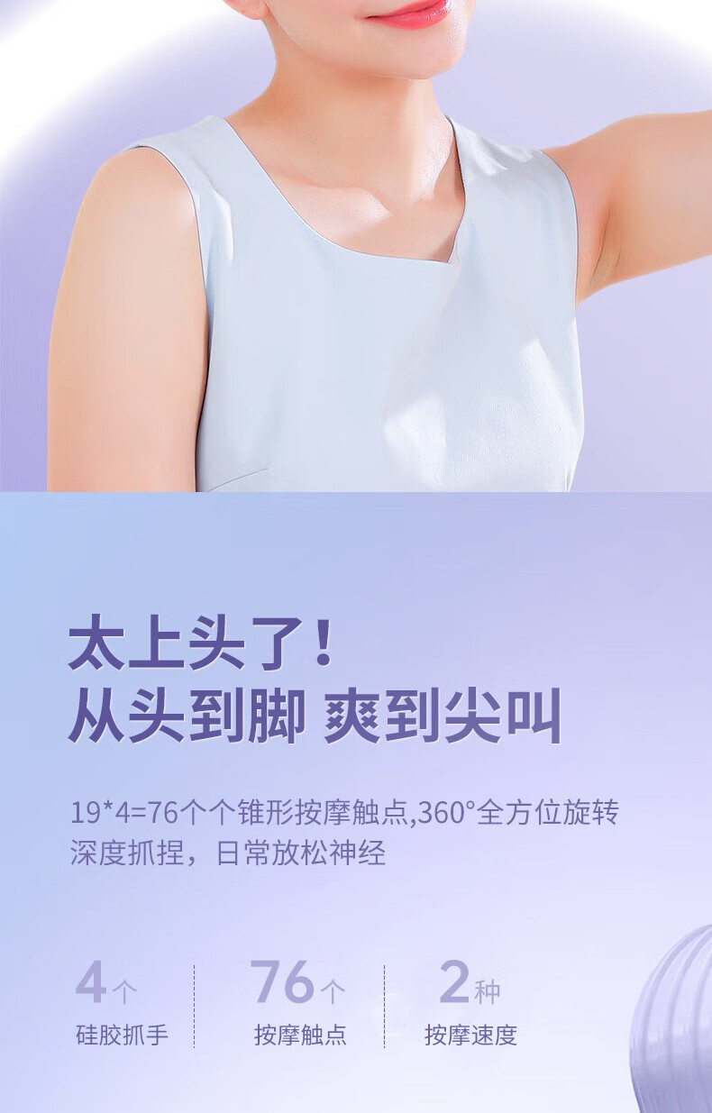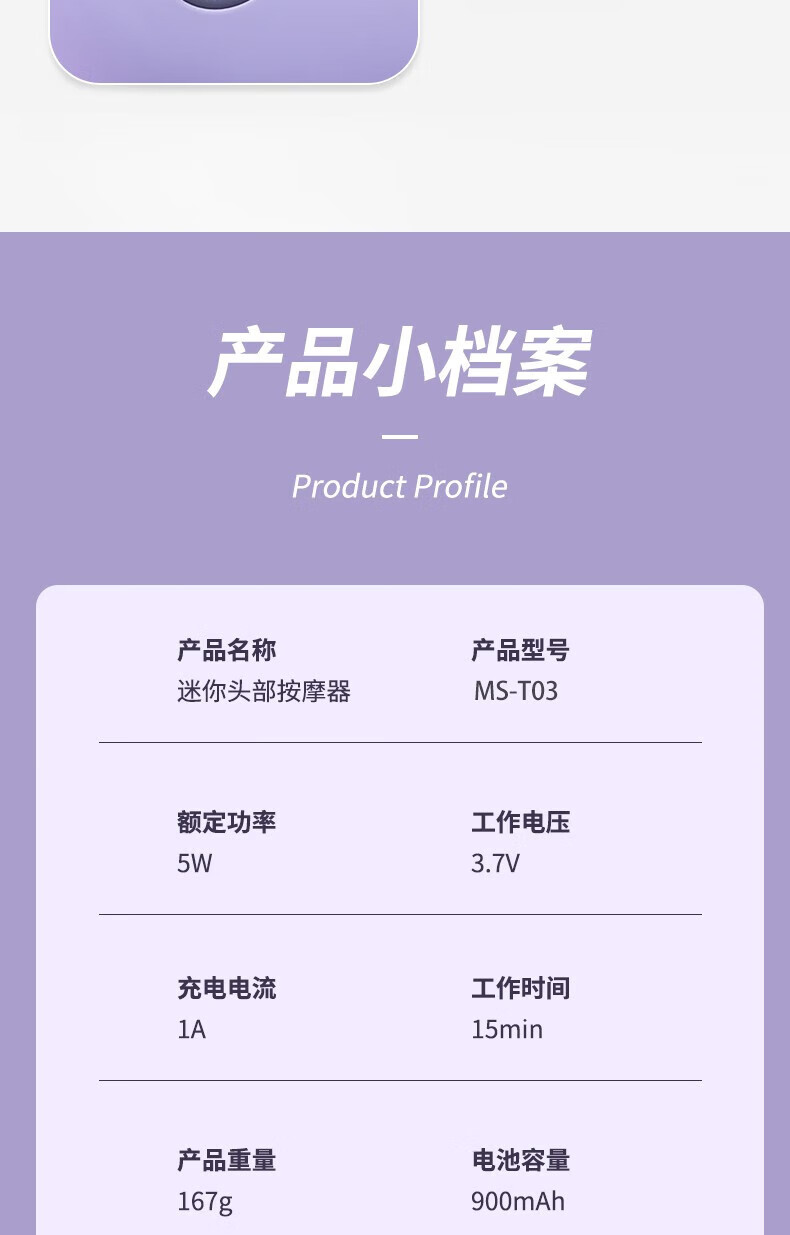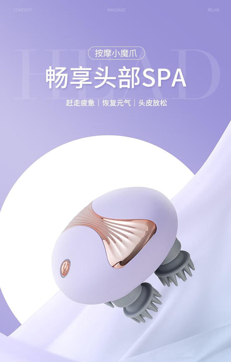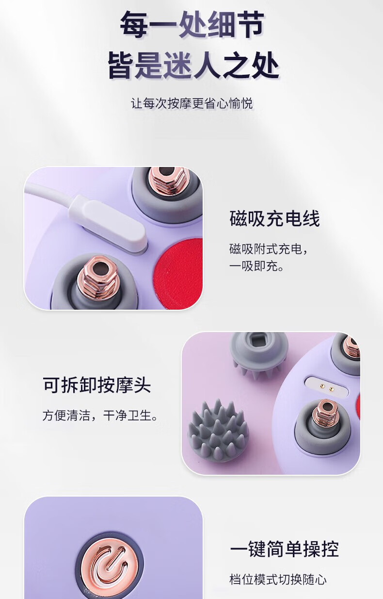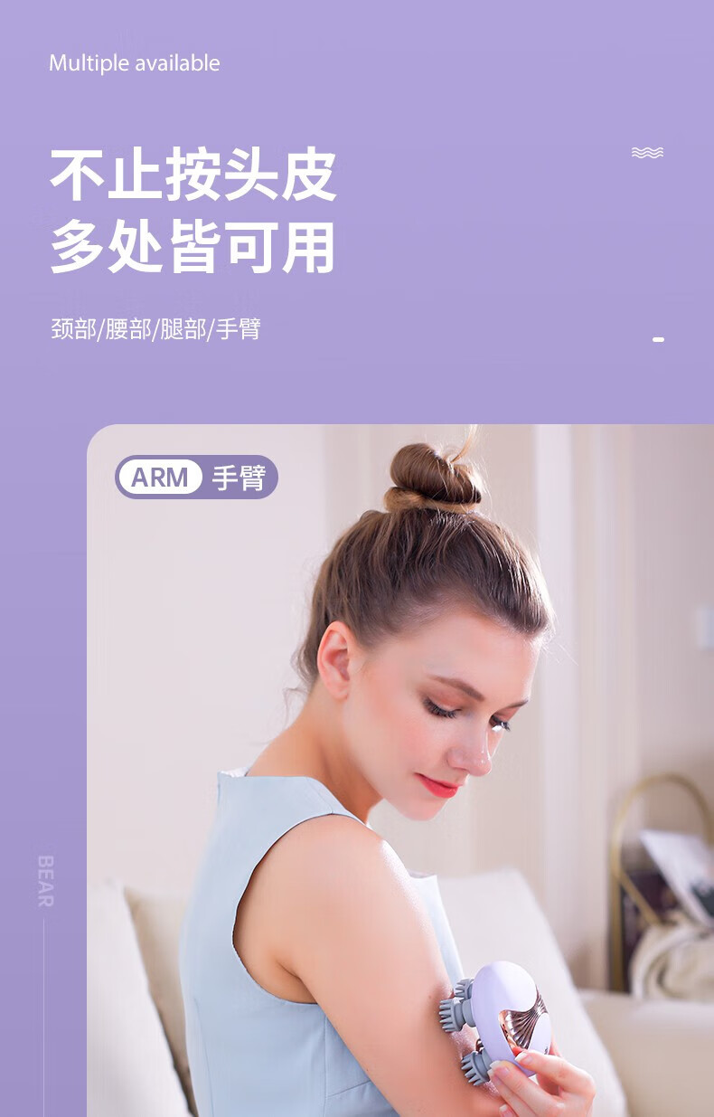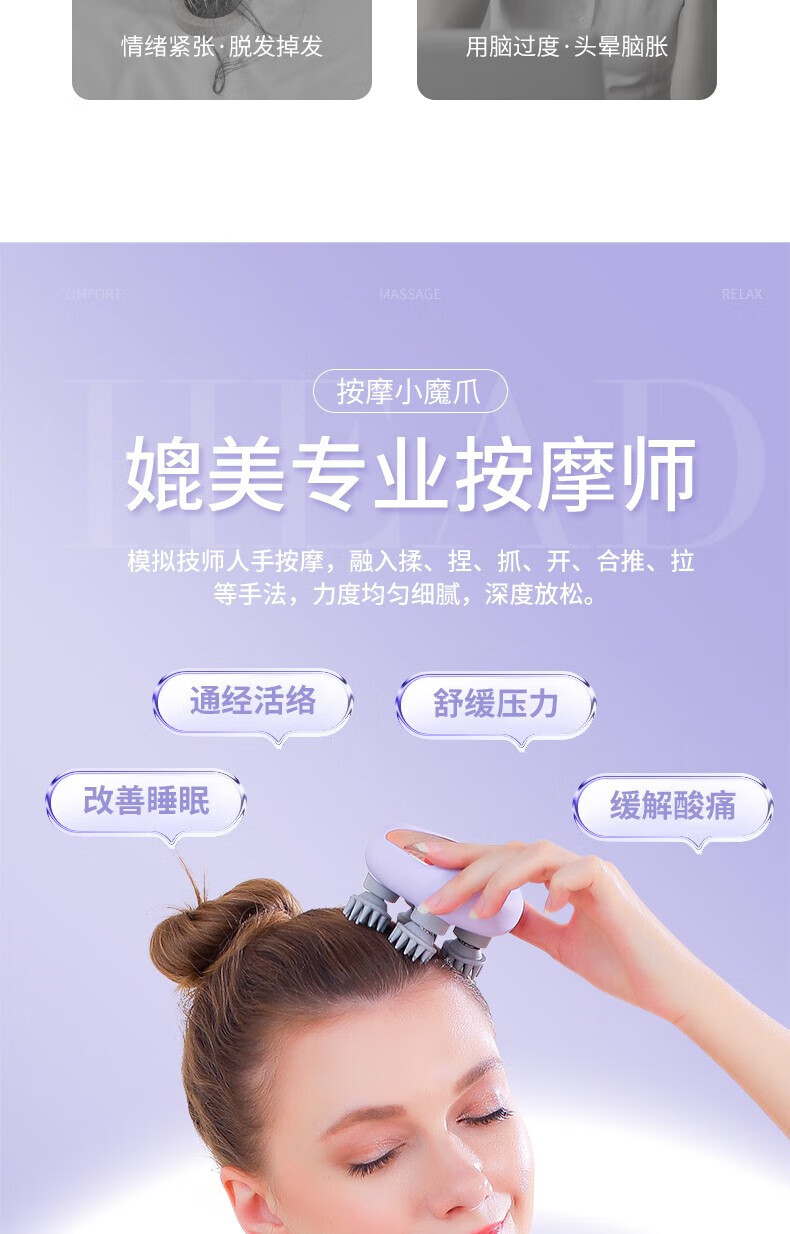 美仕达(Misida)头部按摩器头皮按摩仪头发护理无线充电按摩器 MS-T03粉色/紫色