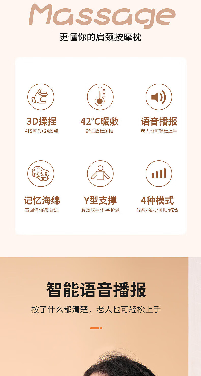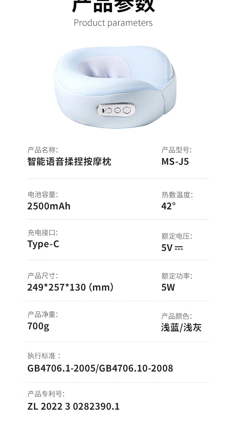 美仕达(Misida)MS-J5 智能语音揉捏按摩枕