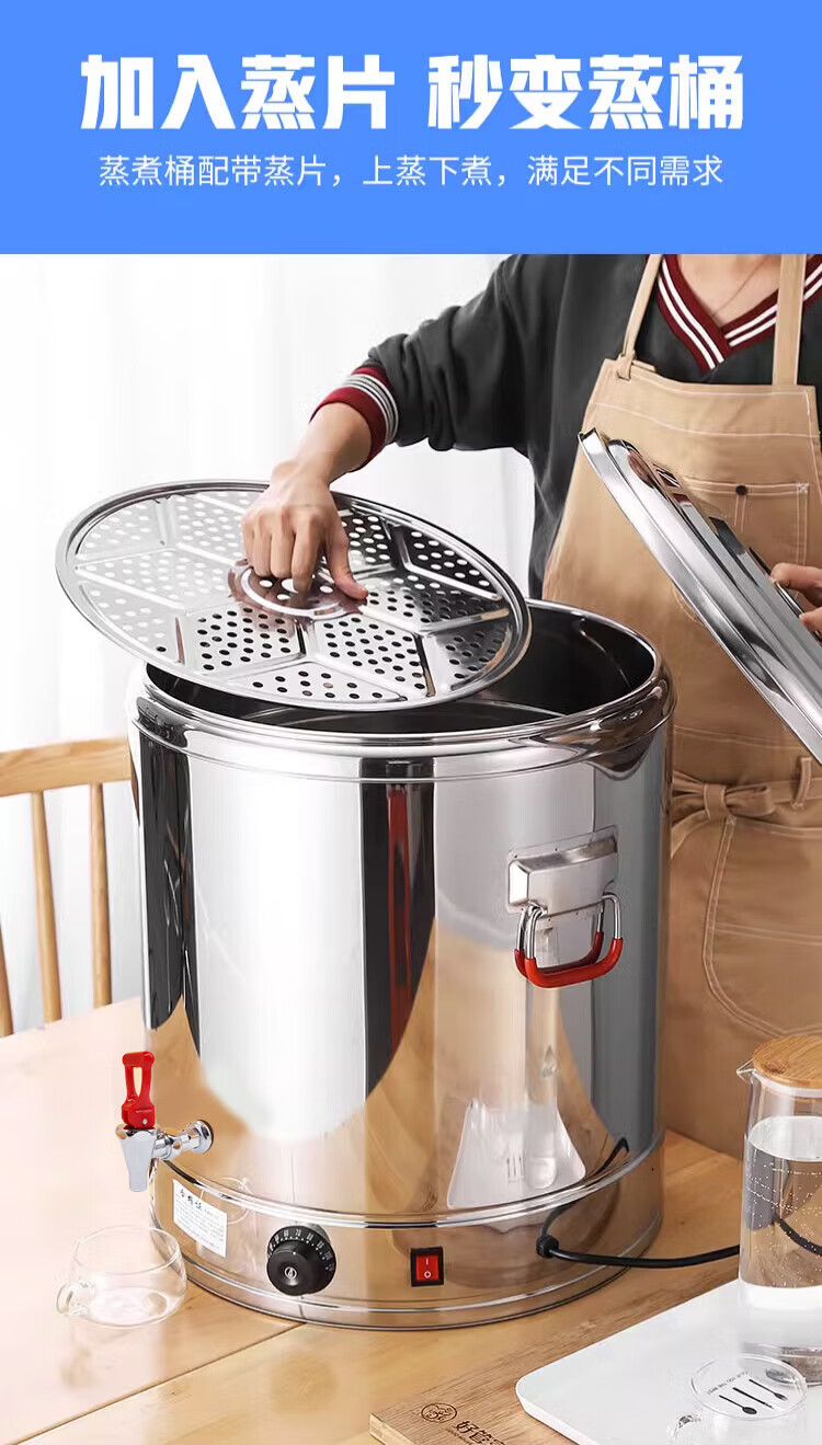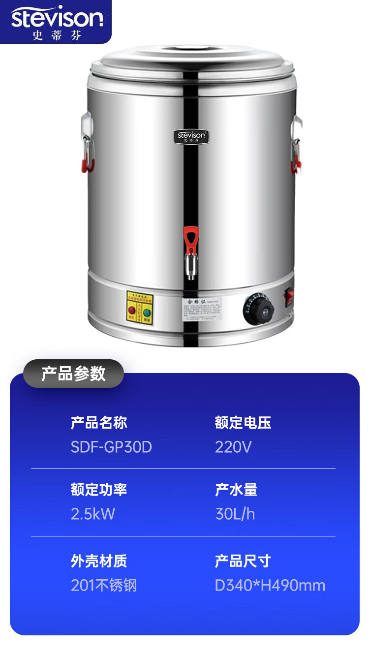 史蒂芬商用电热蒸煮桶不锈钢开水器30L/H大容量加热汤煮粥茶水桶SDF-GP30D