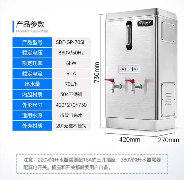 史蒂芬商用大容量380V热水器饭店酒店食堂不锈钢水箱 6kw发泡款不含安装SDF-GP70SH