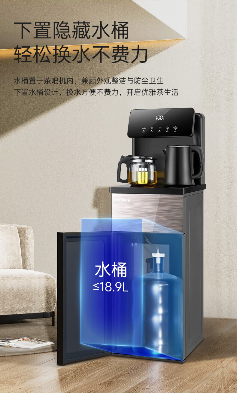 美菱 MELNG家用茶吧机办公室立式饮水机烧水壶 下置式水桶 双出水口远程遥控智能触控大屏MY-A06 ZMD系列