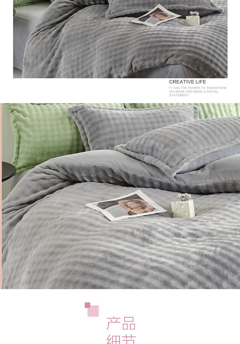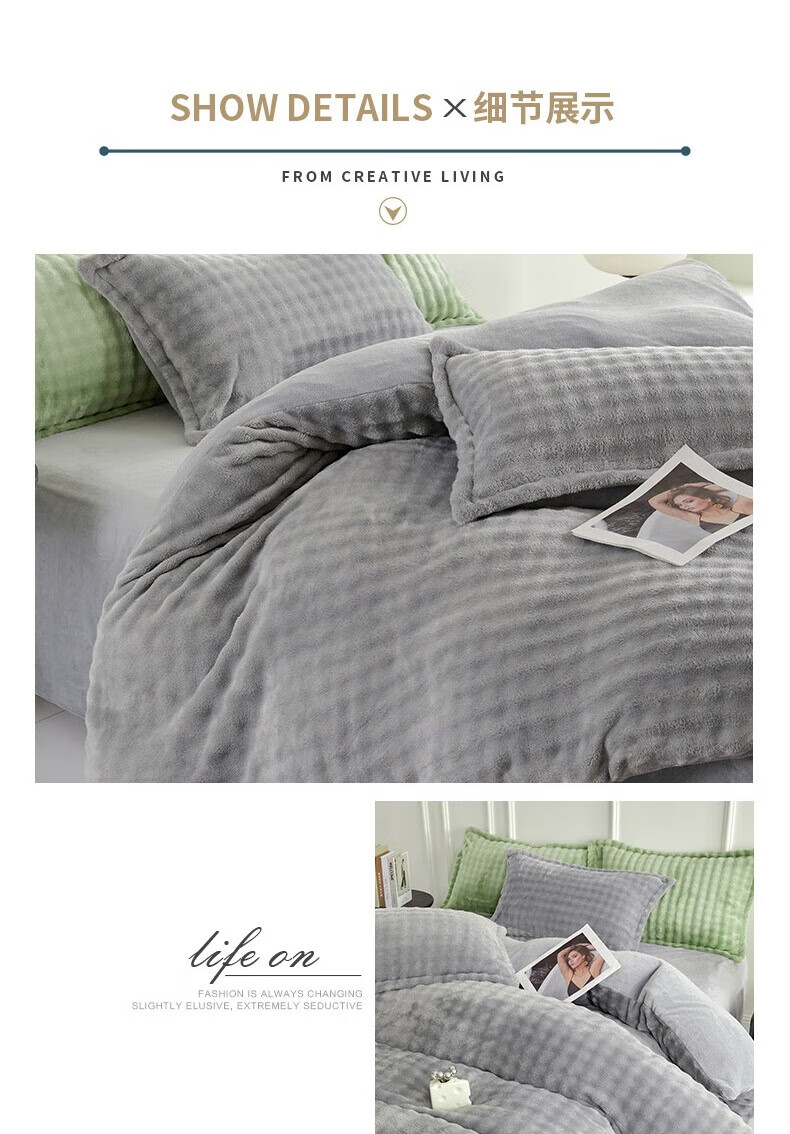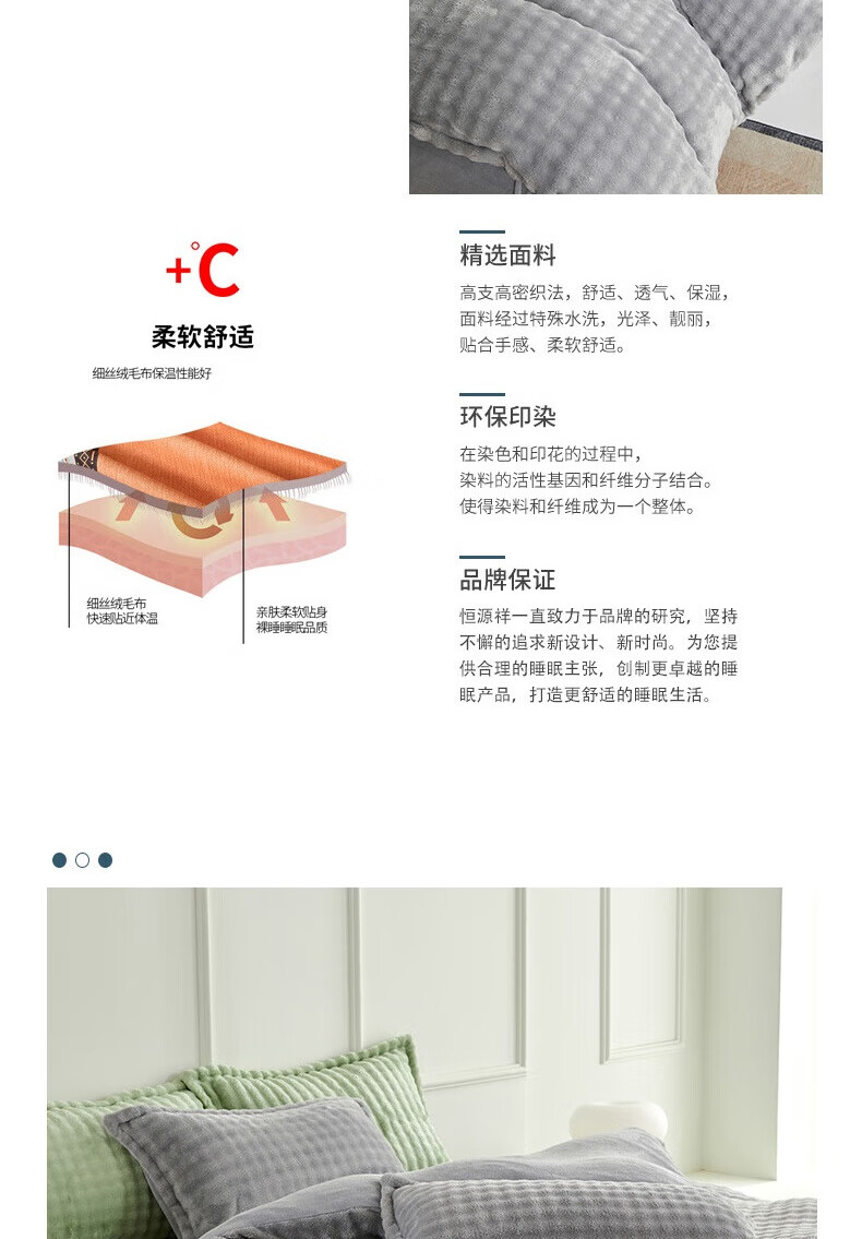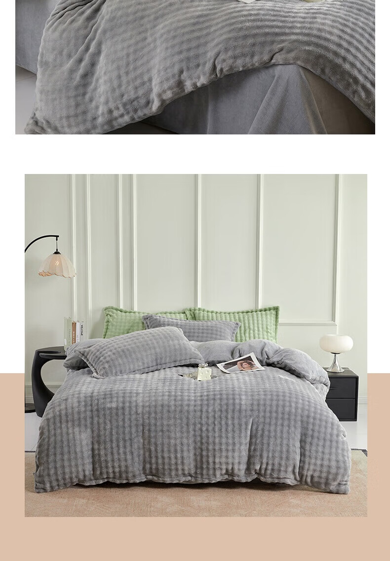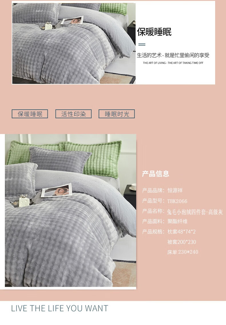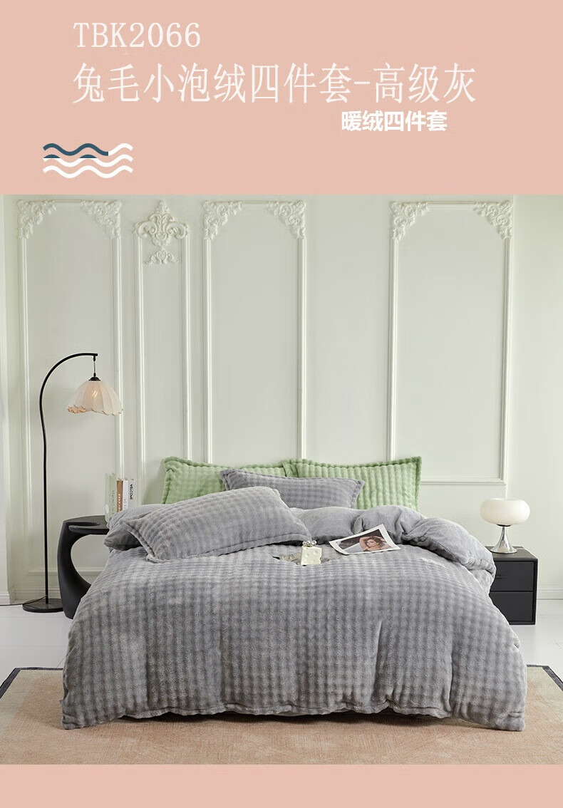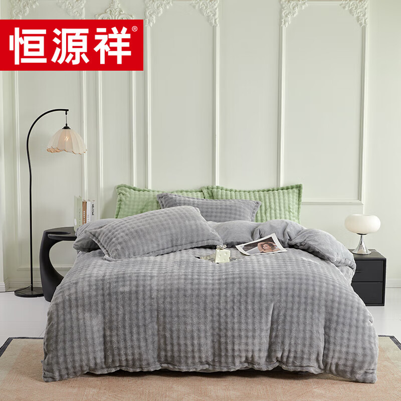 恒源祥 TBK2066 兔毛小泡绒四件套-高级灰