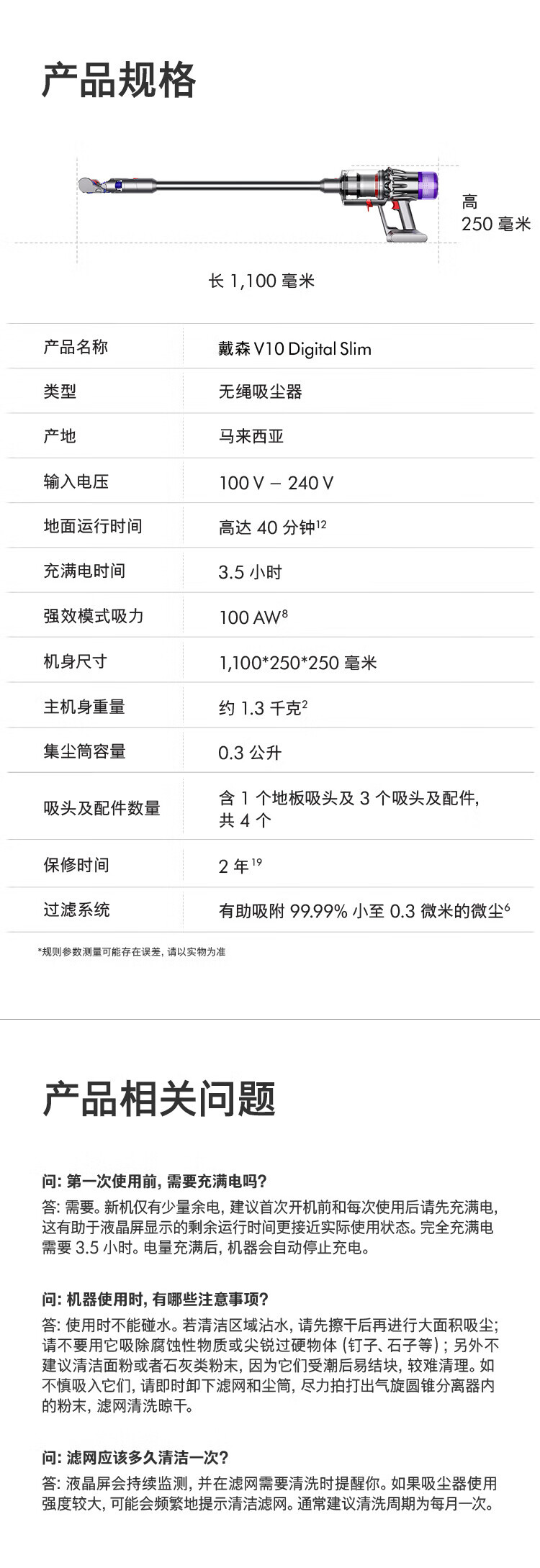 (特)戴森(DYSON)V10 Digital Slim 无绳吸尘器【2023铁镍色】手持无线吸尘器(南京江韵项目专拍,拍前请咨询客服)