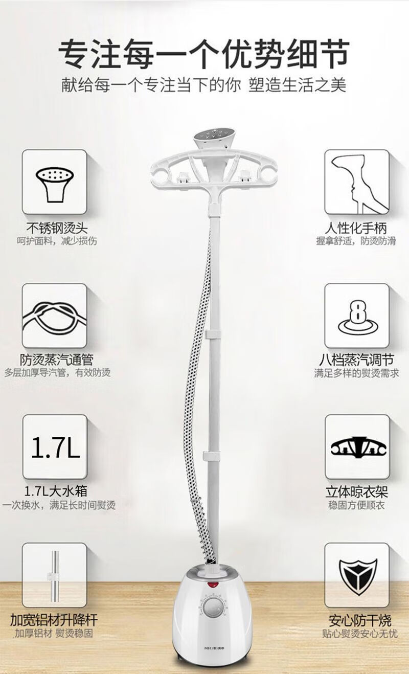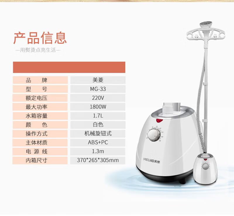 美菱 MELNG家用蒸汽挂烫机八孔蒸汽手持熨烫机MG33 经典白