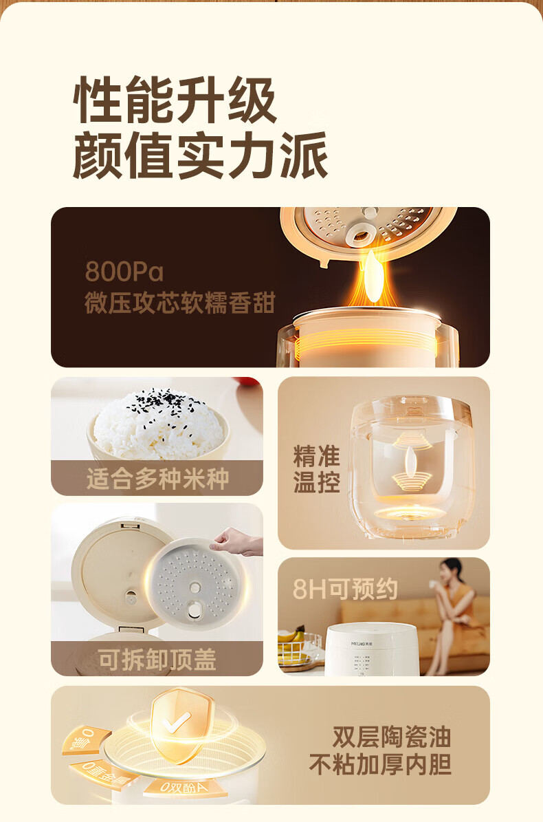 美菱 MELNG电饭煲家用智能触摸操控多功能小电饭锅 2.8L MF-W2801