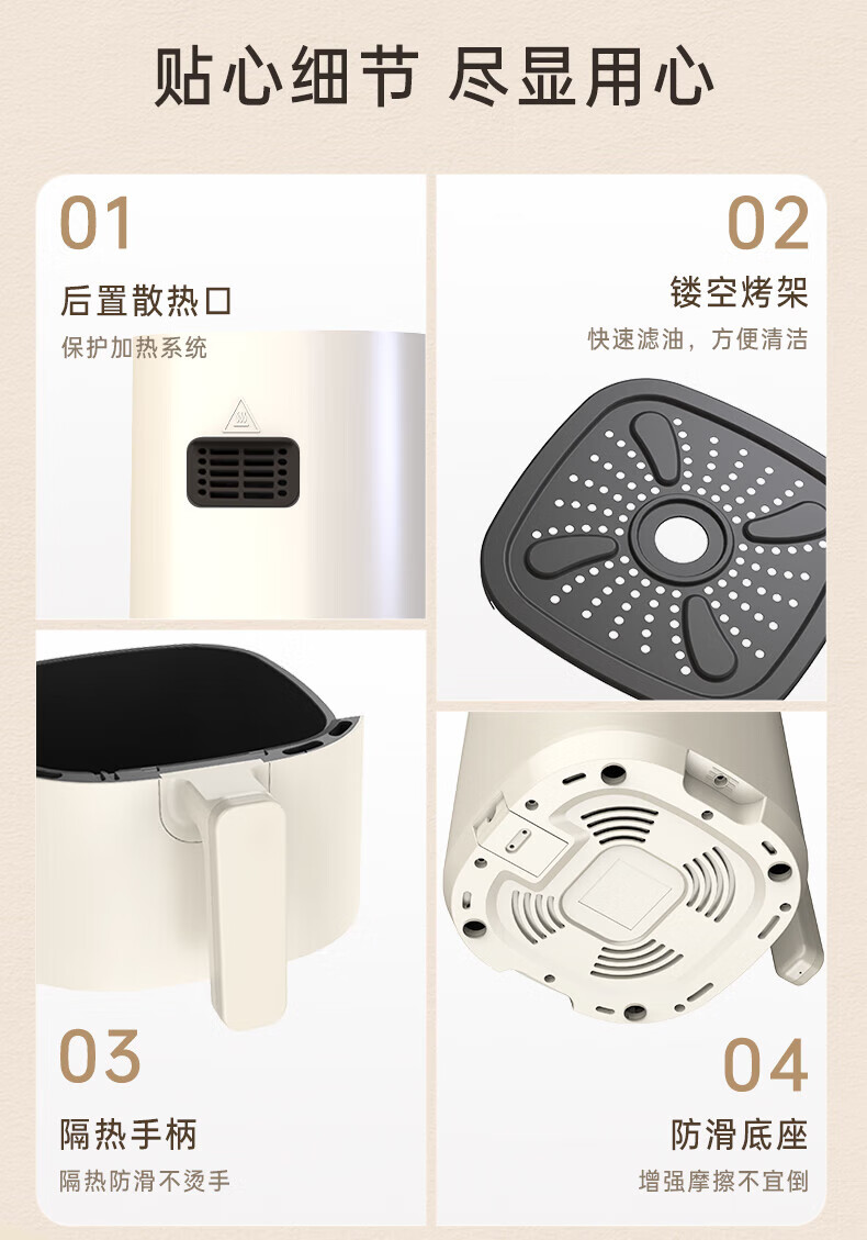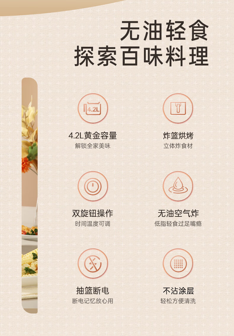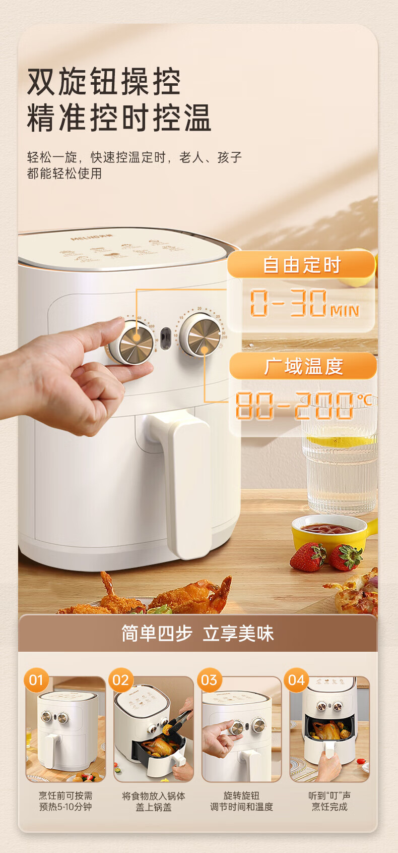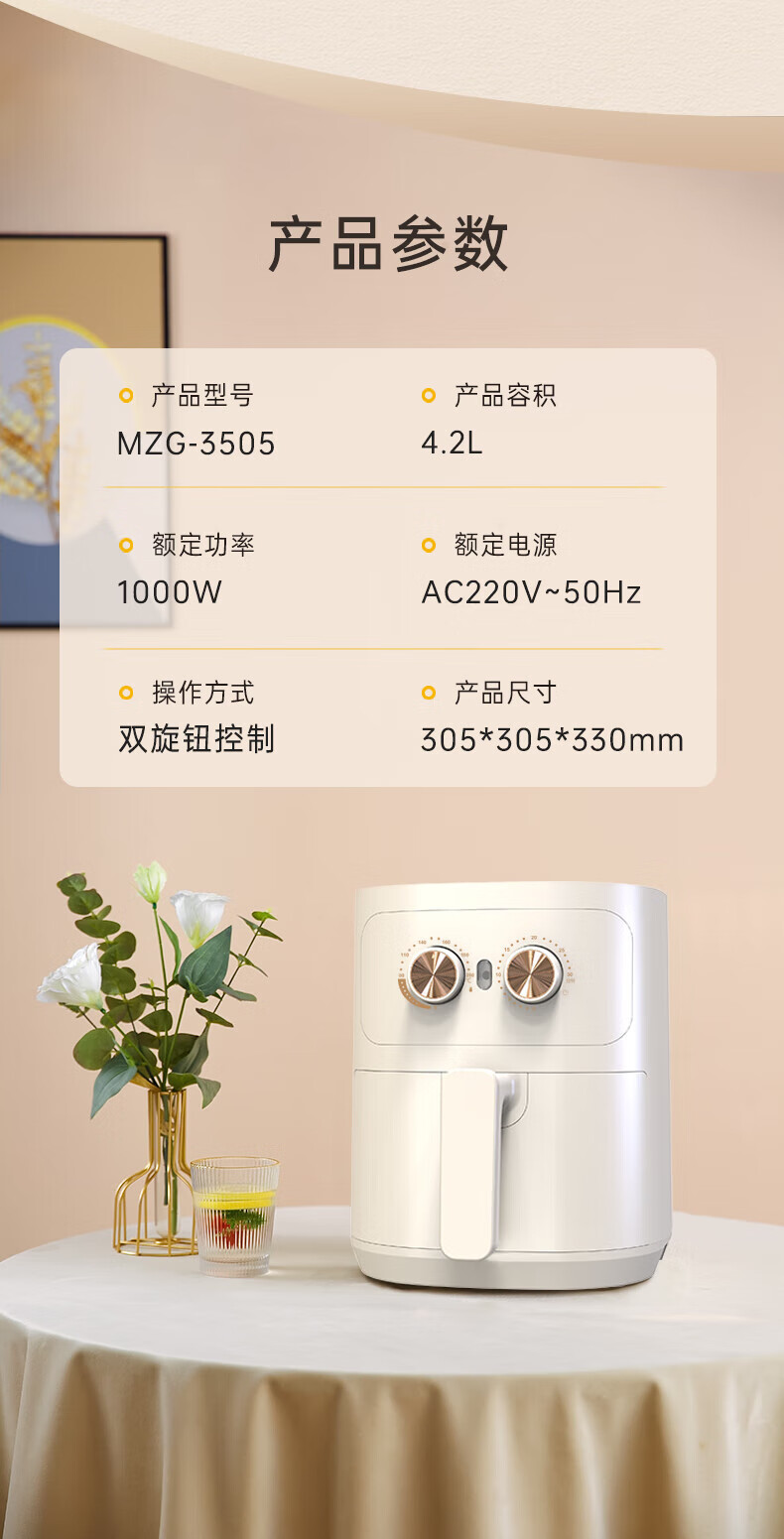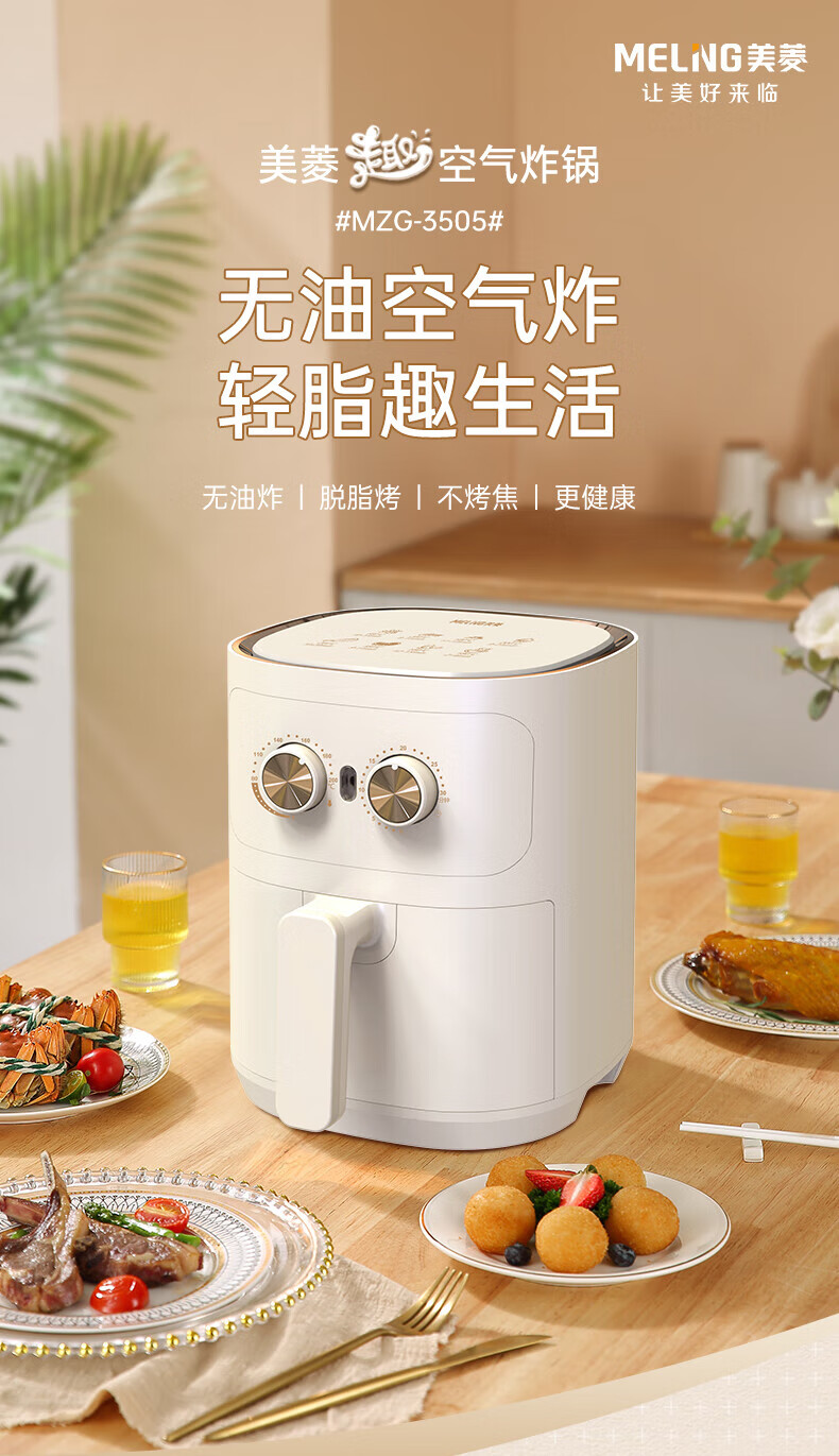美菱 MELNG家用空气炸锅 大容量 MZG-3505 米白色 4.2L