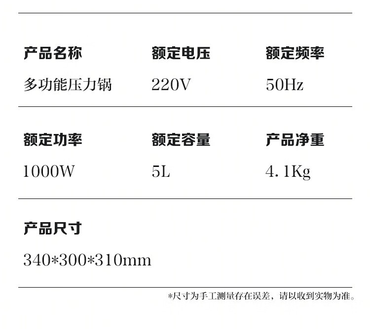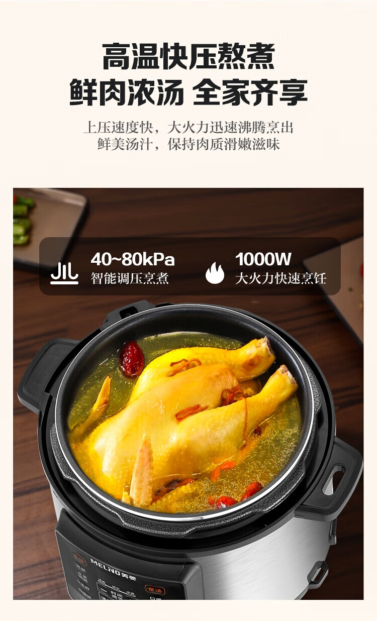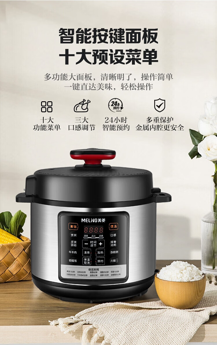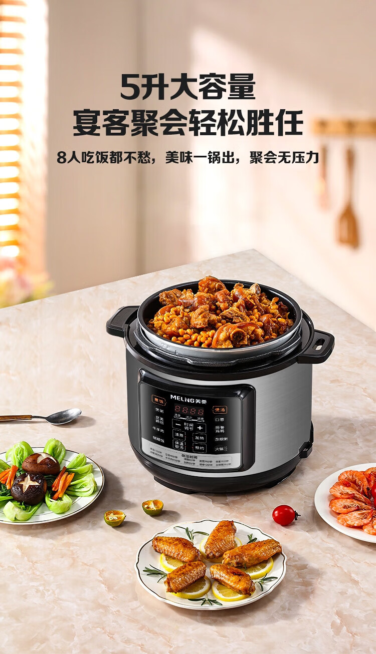 美菱 MELNG家用5L电压力锅双胆全自动智能预约压力锅开盖煲汤/煮粥4~6人电饭锅 ML-DA5011-单内胆 5L