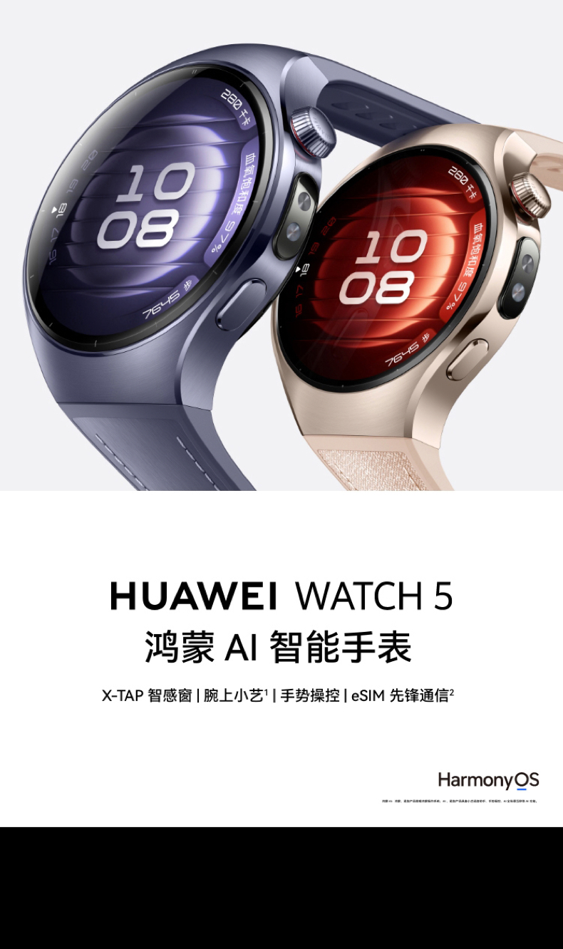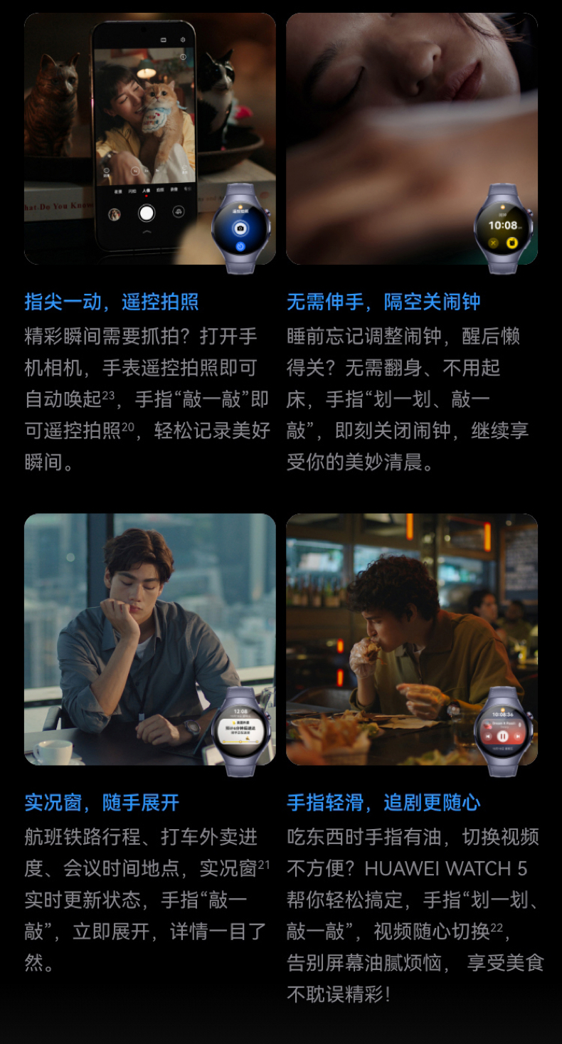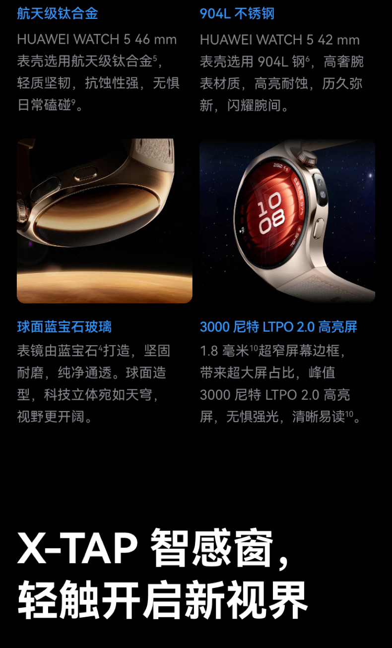 (特)HUAWEI WATCH 5 42mm基础款深锖色不锈钢表壳幻月黑氟橡胶表带首创X-TAP智感窗eSIM通信手表华为智能手表