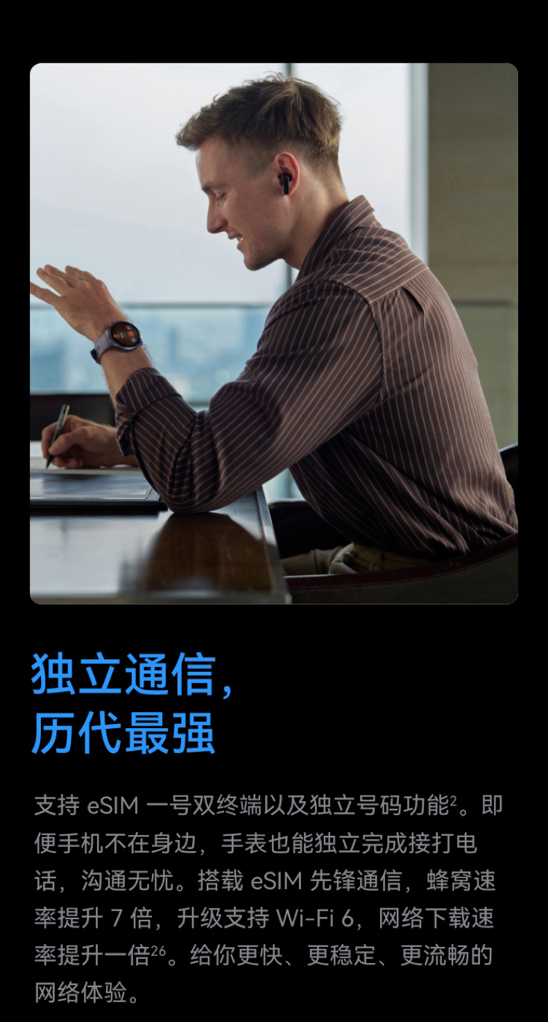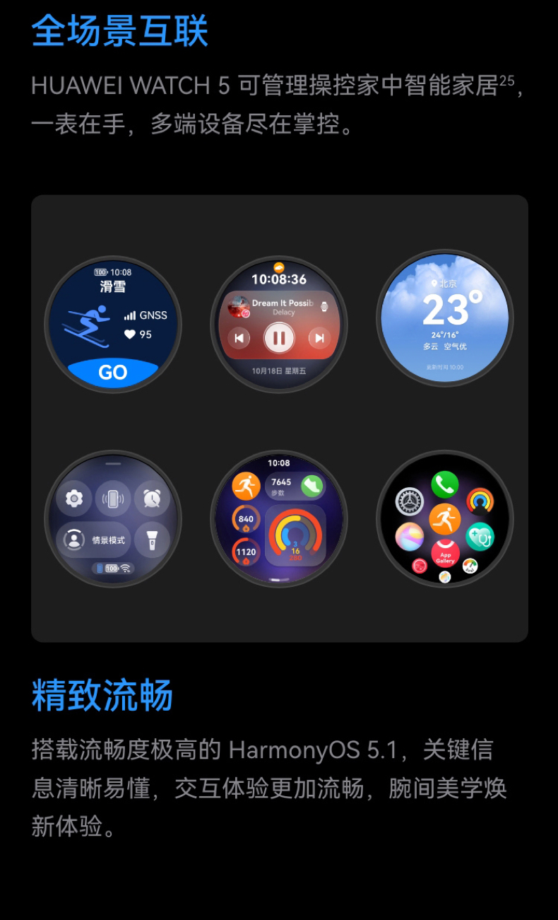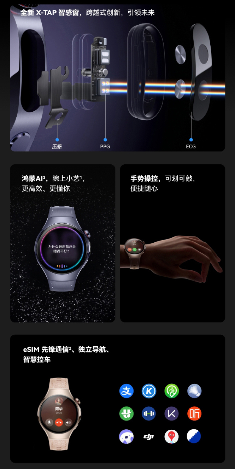 (特)HUAWEI WATCH 5 42mm基础款深锖色不锈钢表壳幻月黑氟橡胶表带首创X-TAP智感窗eSIM通信手表华为智能手表