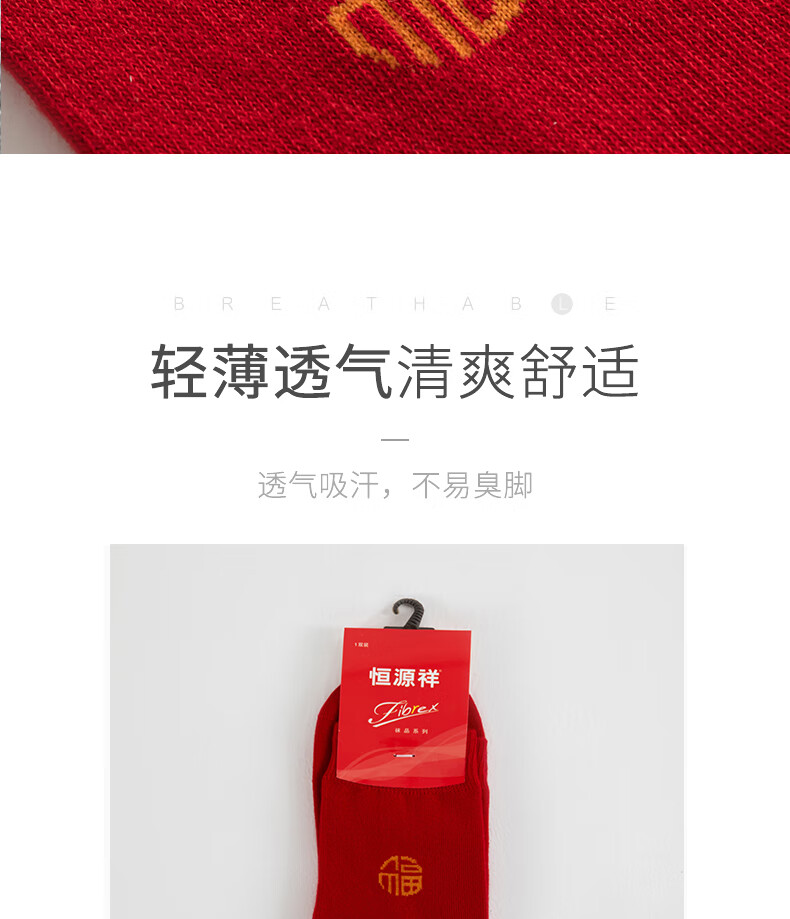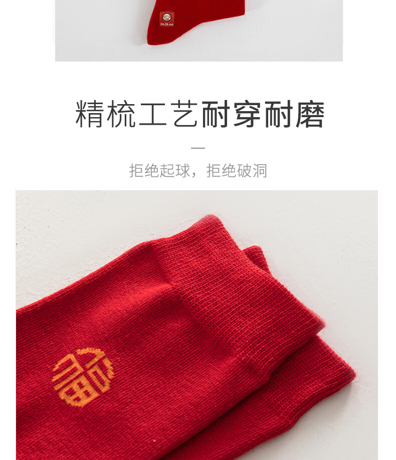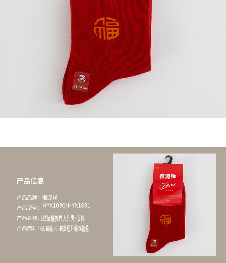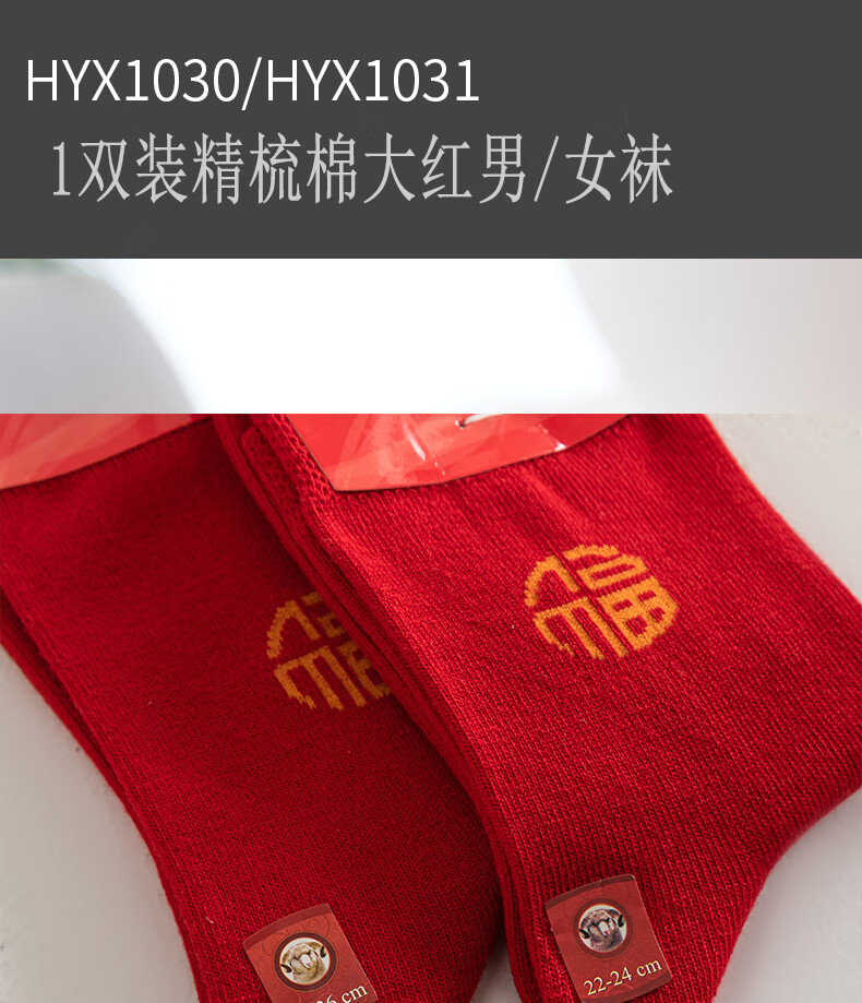 恒源祥 HYX1031 1双装精梳棉大红女袜