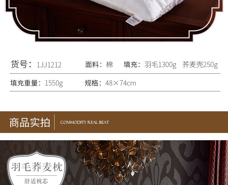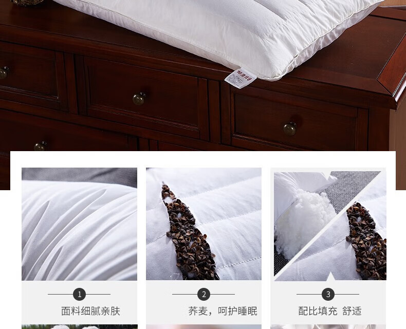 恒源祥 1JJ1212 单人双人枕芯纤维枕 羽毛荞麦枕 48*74CM