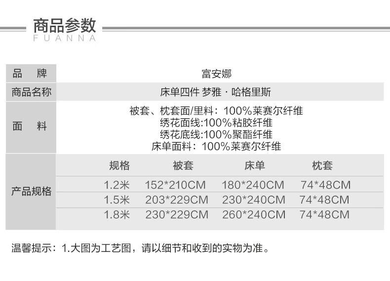 富安娜 床单四件\梦雅·哈格里斯\D适用1.5米床203*229cm