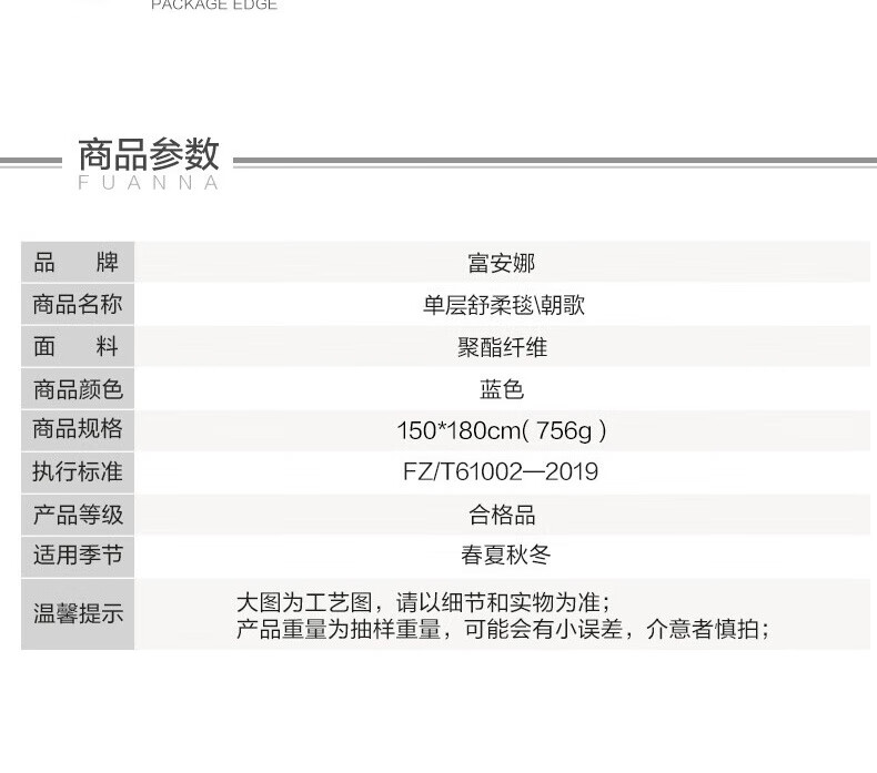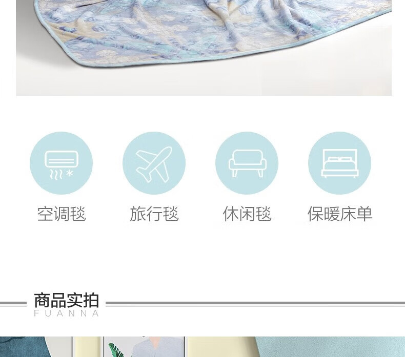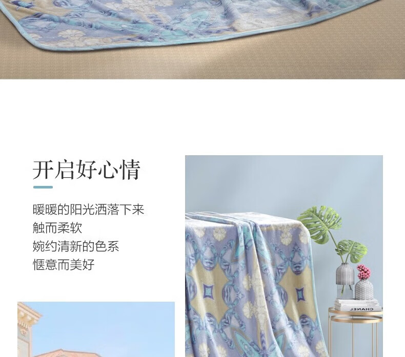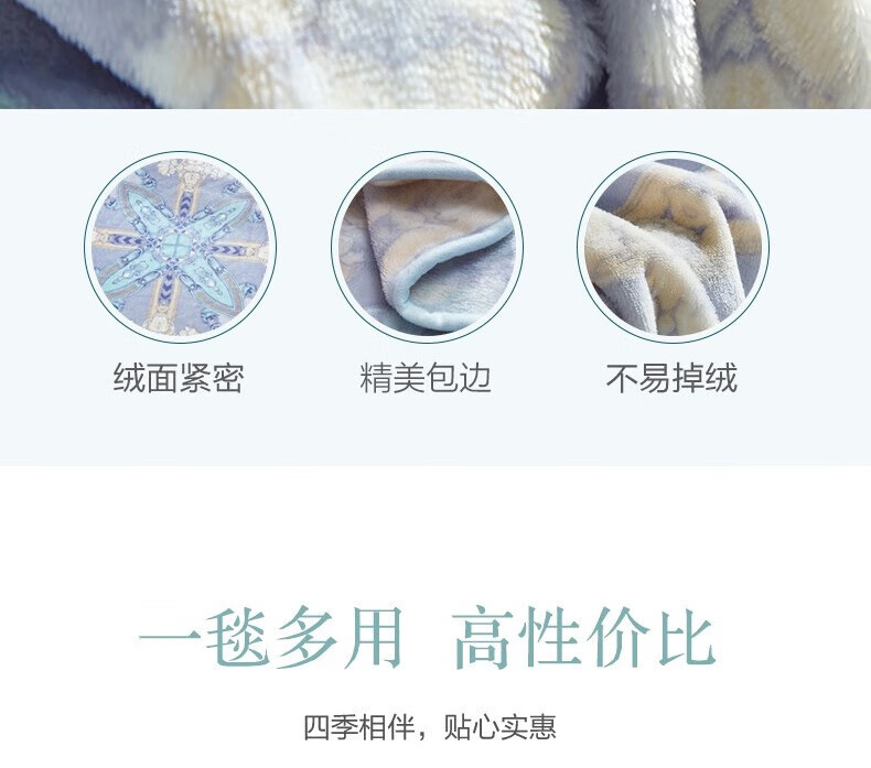 富安娜 单层法兰绒毯 朝歌 浅紫 150*180cm 756g