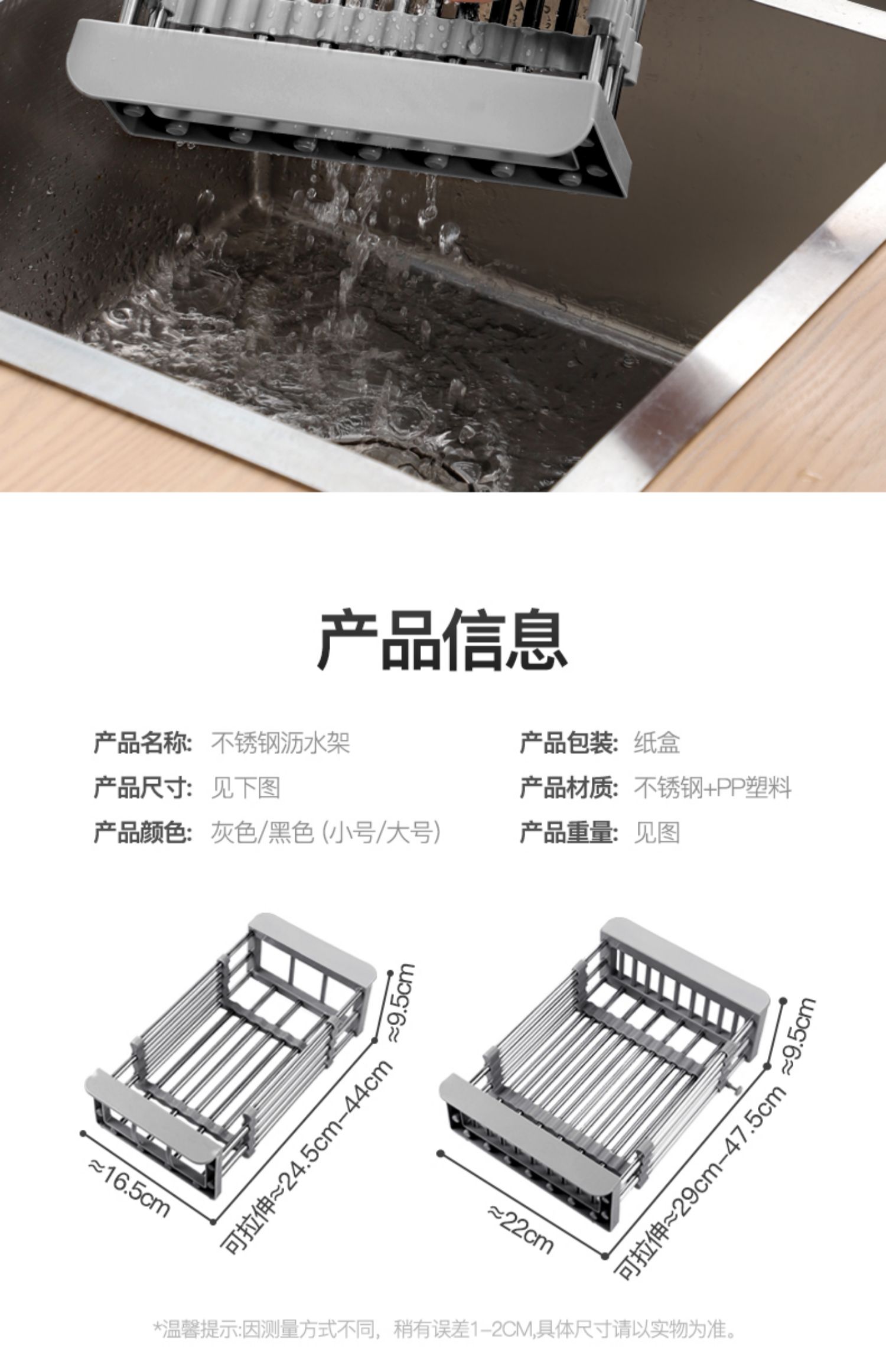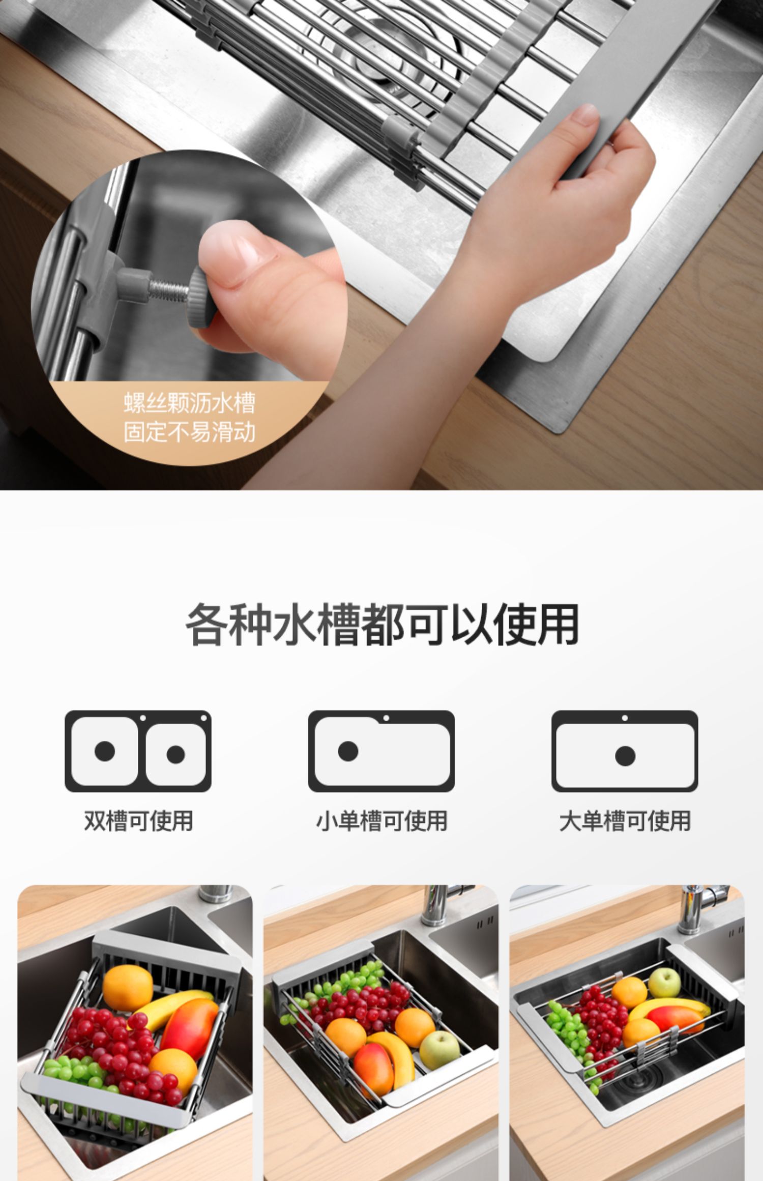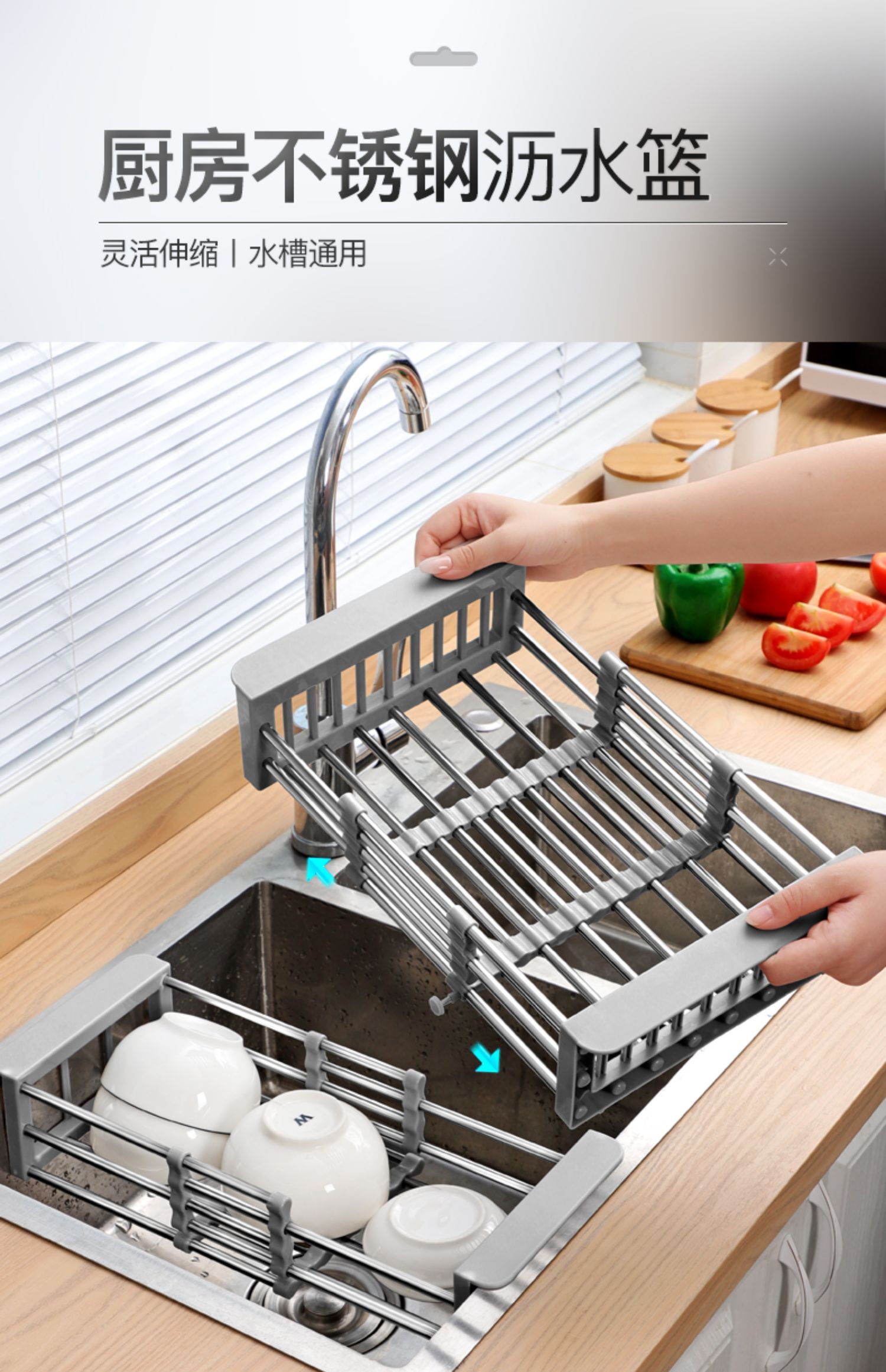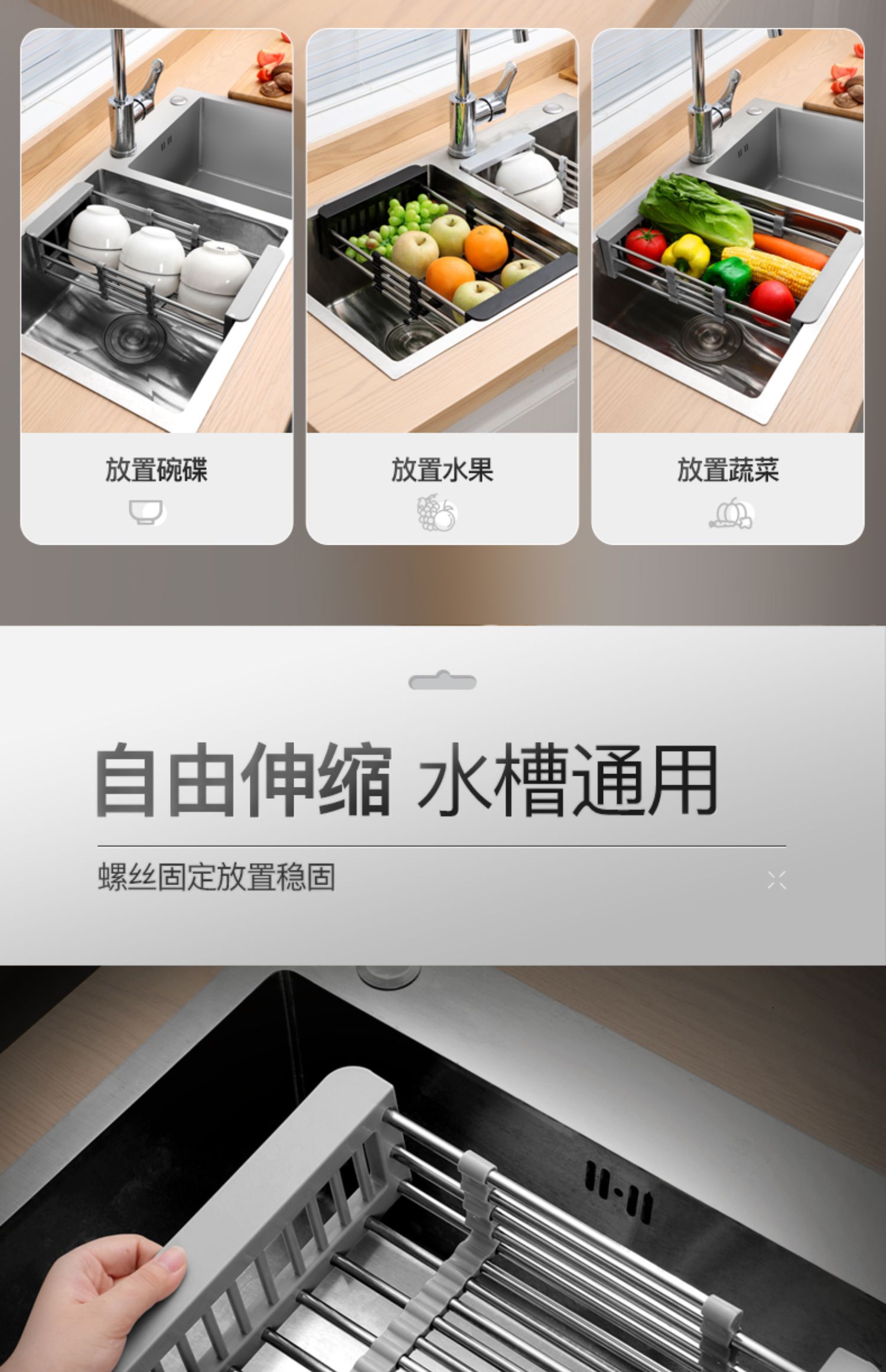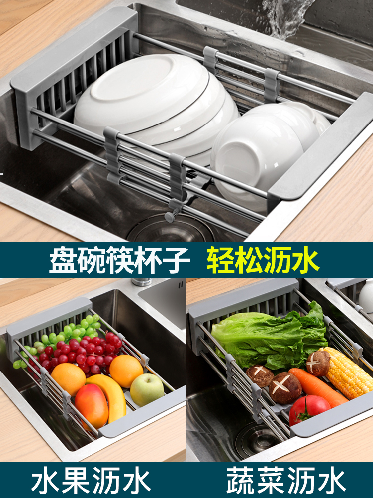 (特)沥碗架家用厨房水槽置物架子水池不锈钢放碗筷洗碗池沥水篮洗菜盆