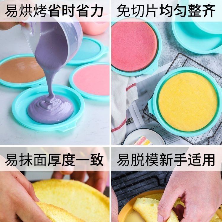 (特)硅胶戚风蛋糕模具 4/6/8寸圆形免切分层烤盘烤箱用家用烘焙工具