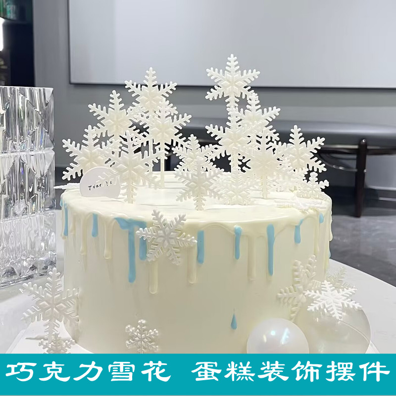(特)大小雪花巧克力蛋糕装饰生日插件可食用烘焙冰淇淋慕斯甜品圣诞节