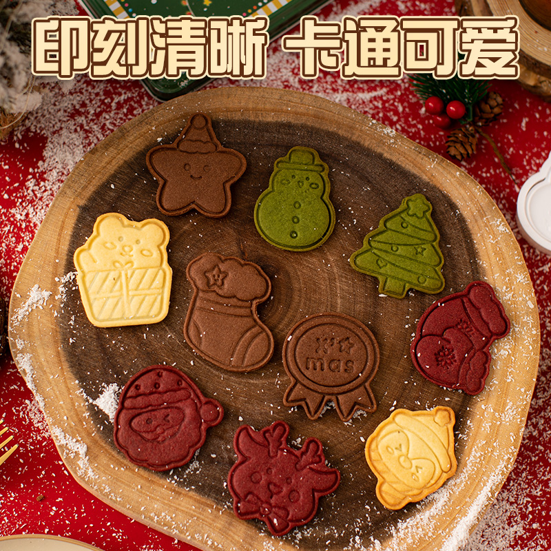 (特)圣诞节饼干模具糖霜手压式姜饼屋圣诞老人卡通烘焙工具3D立体diy