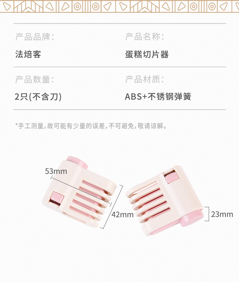 (特 )法焙客戚风蛋糕分片器分切器吐司面包分割器切片分层器烘焙2个装