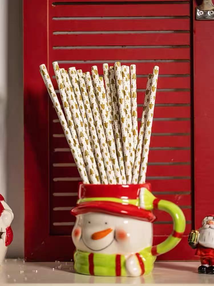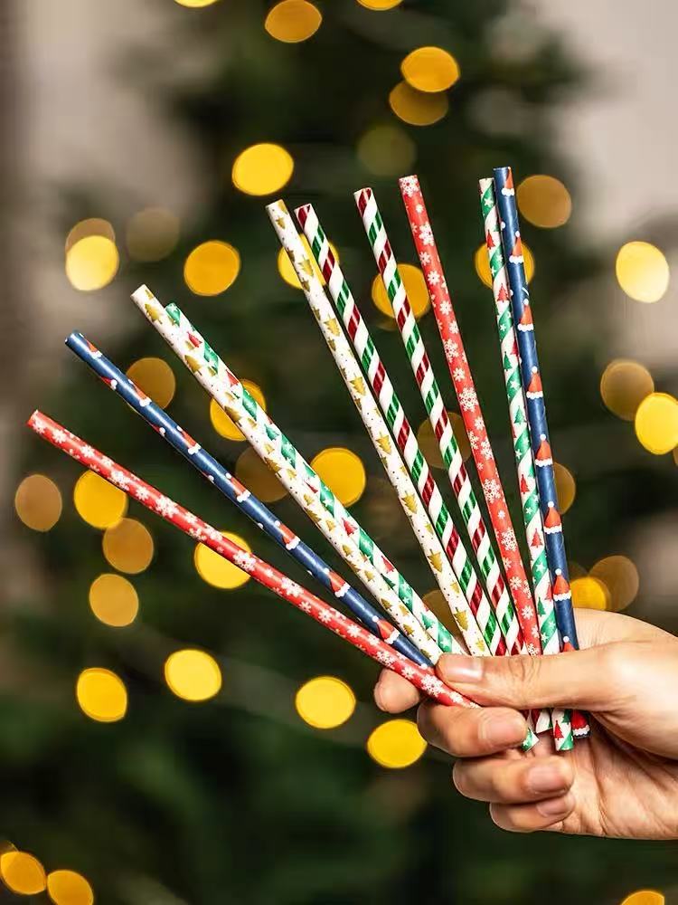 (特)圣诞节装饰品酒吧活动派对场景布置创意氛围一次性圣诞树纸质吸管