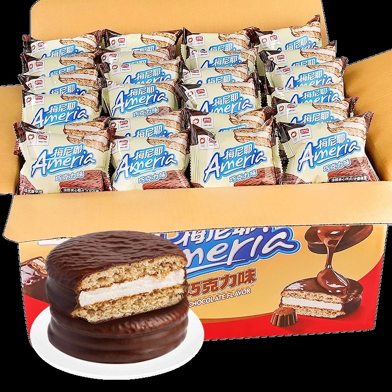 (特)盼盼梅尼耶巧克力派整箱蛋黄夹心蛋糕饼干面包营养早餐充饥小零食