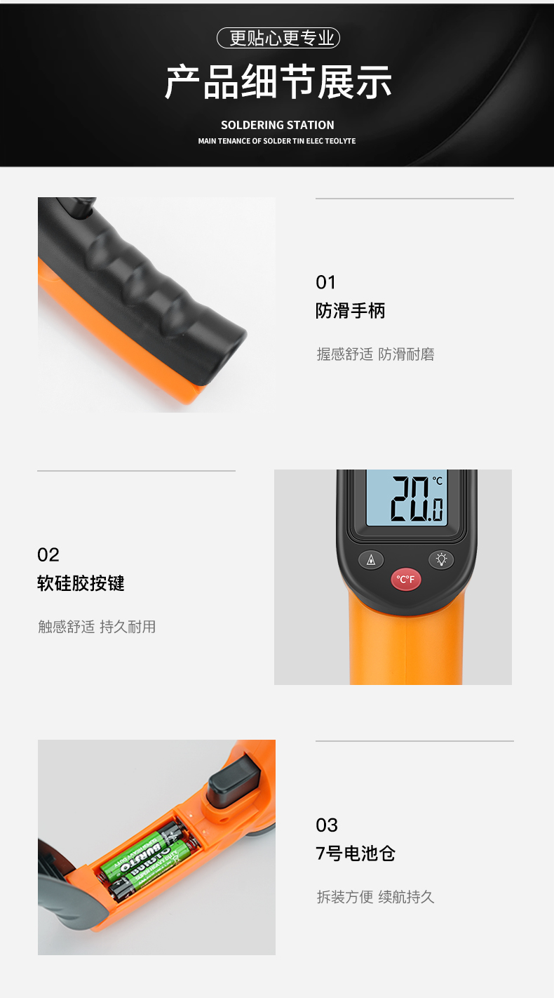 (特)擎威高精度红外测温枪空调出风口测温仪温度测量计油温枪厨房专用