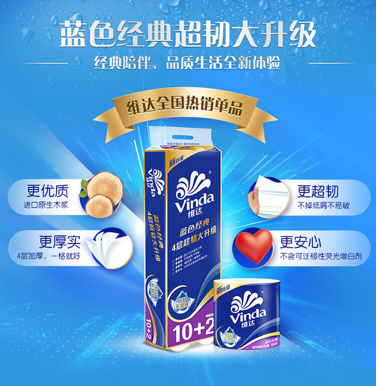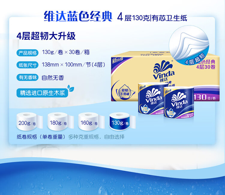 (特)如意芳华专用维达(Vinda)有芯卷纸4层 130g*30卷整箱