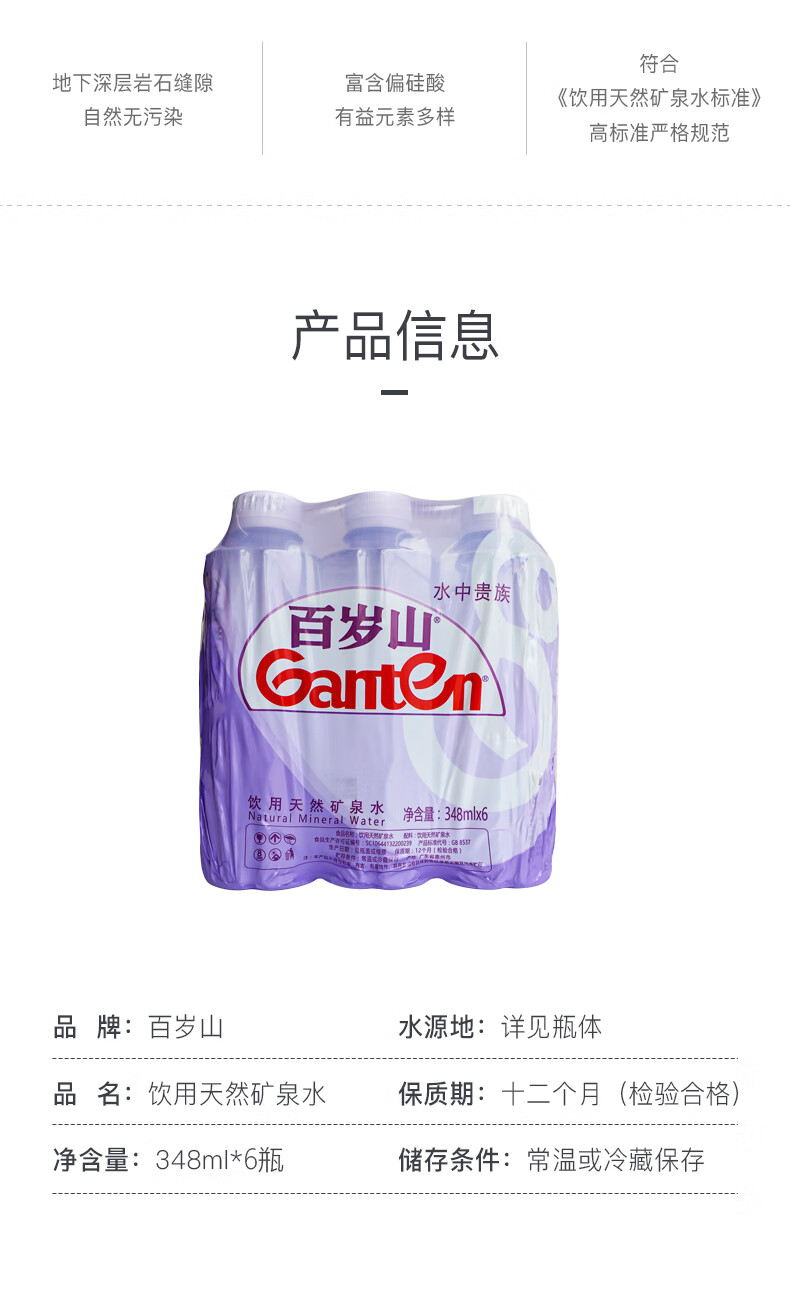 (特)如意芳华专用 百岁山 饮用天然矿泉水 348ml*6瓶