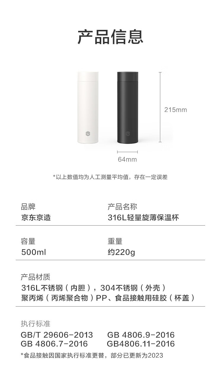 (特)京东京造 保温杯 316L不锈钢(南京江韵项目专拍,拍前请咨询客服)