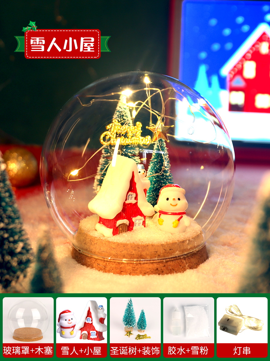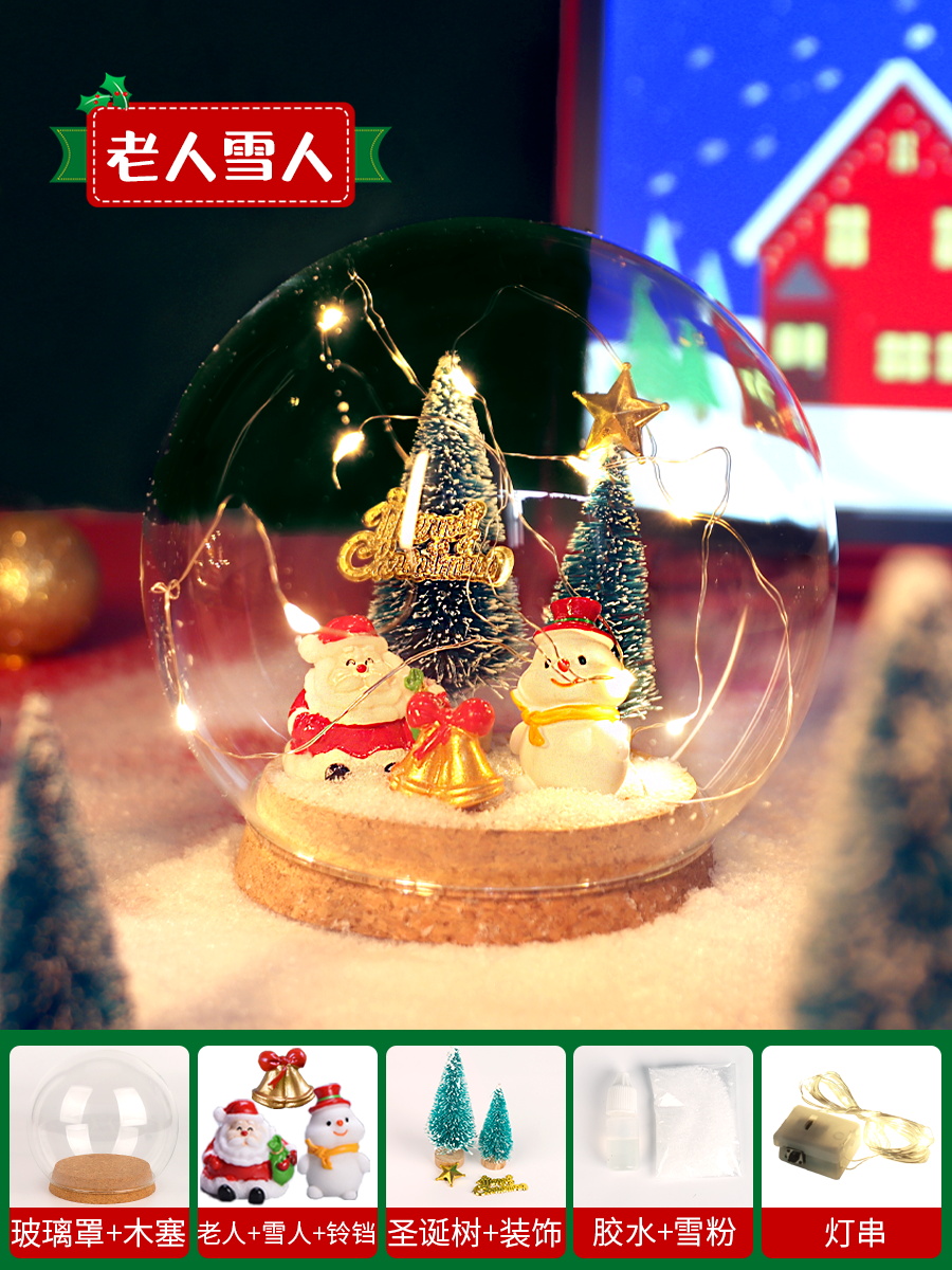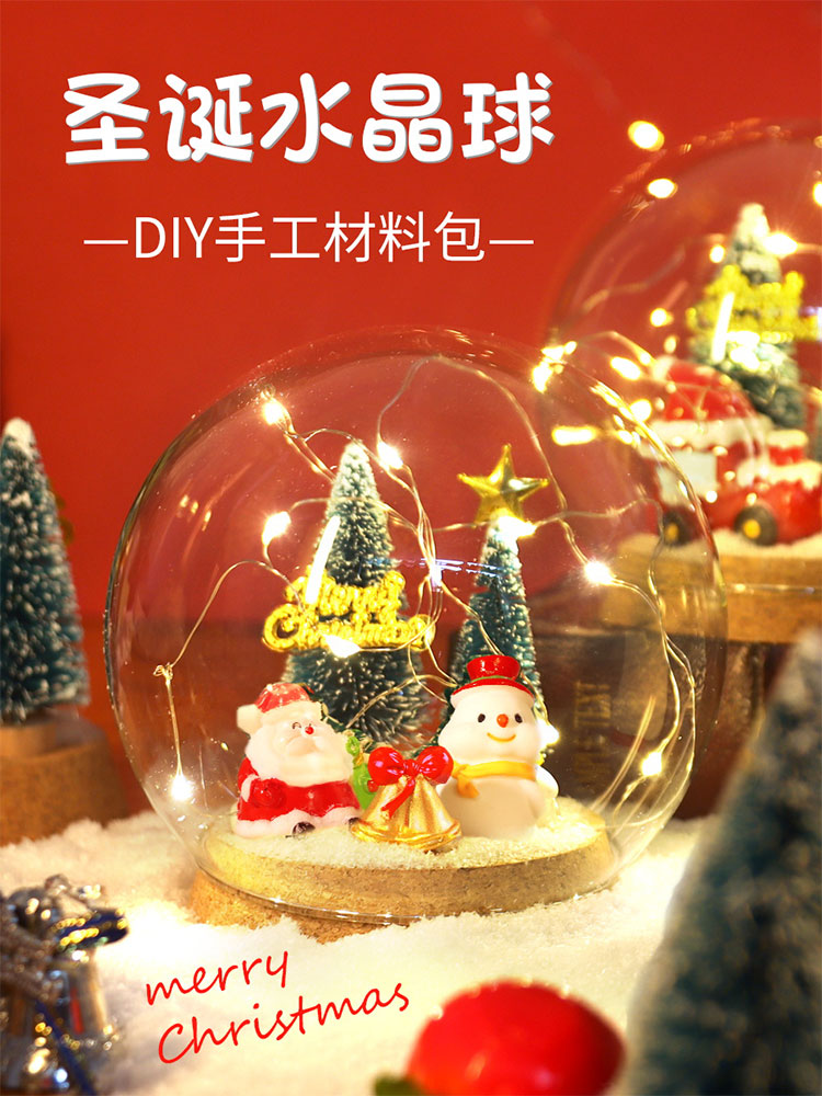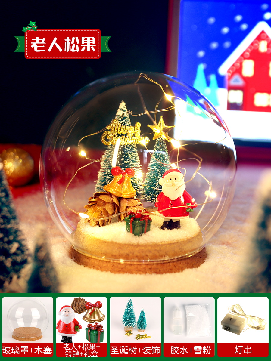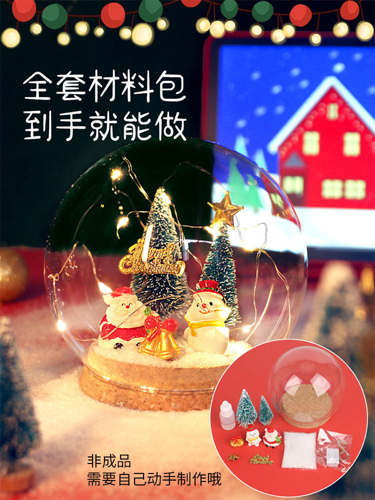 (特)圣诞节装饰圣诞树圣诞老人水晶球玻璃罩手工diy材料包桌面摆件
