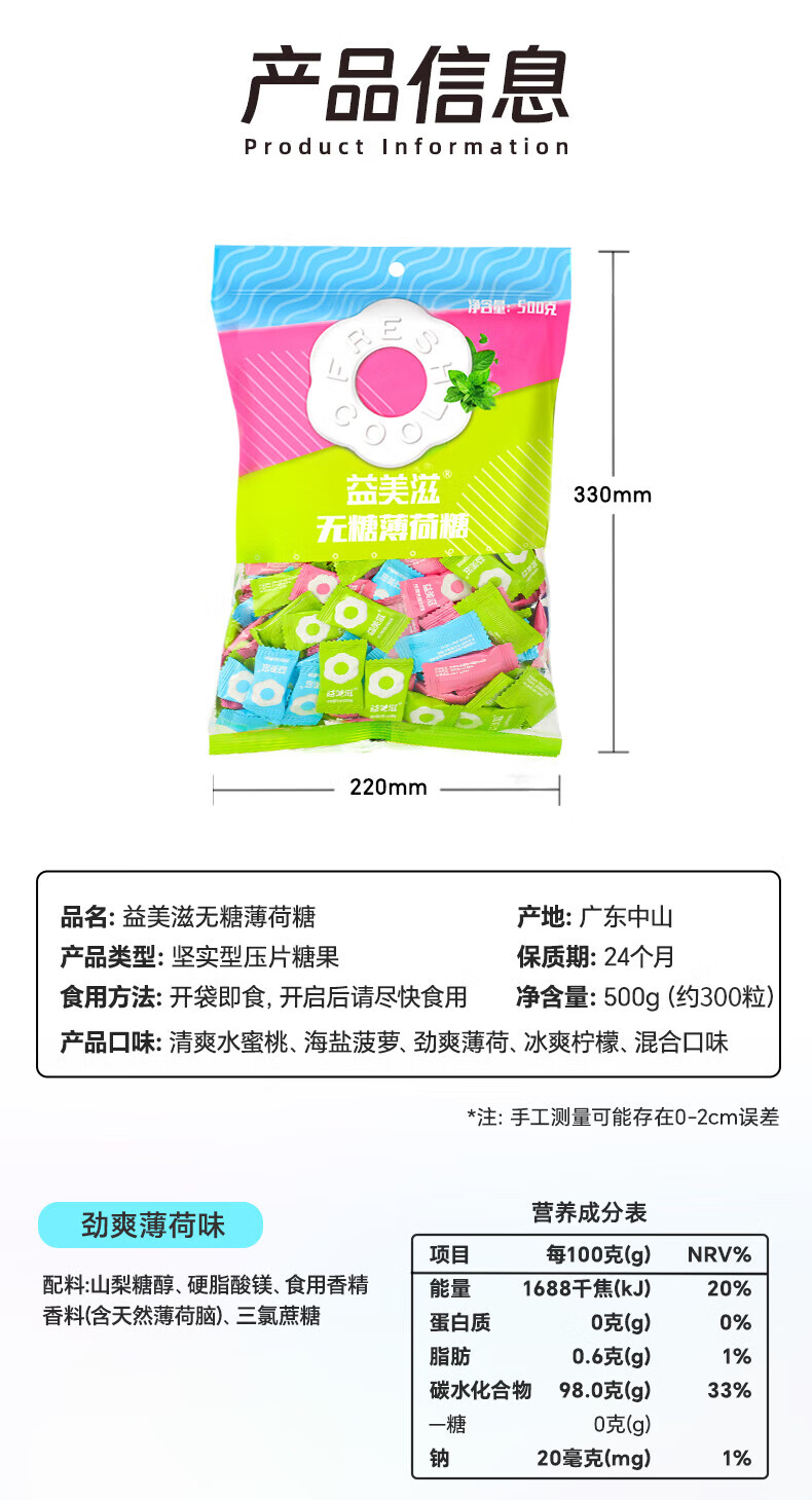(特)I'MINT 益美滋 无糖薄荷糖 500g