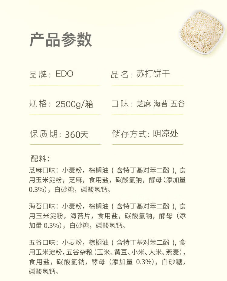 (特)(EDOpack) 芝麻味 酵母苏打饼干 5斤装/箱