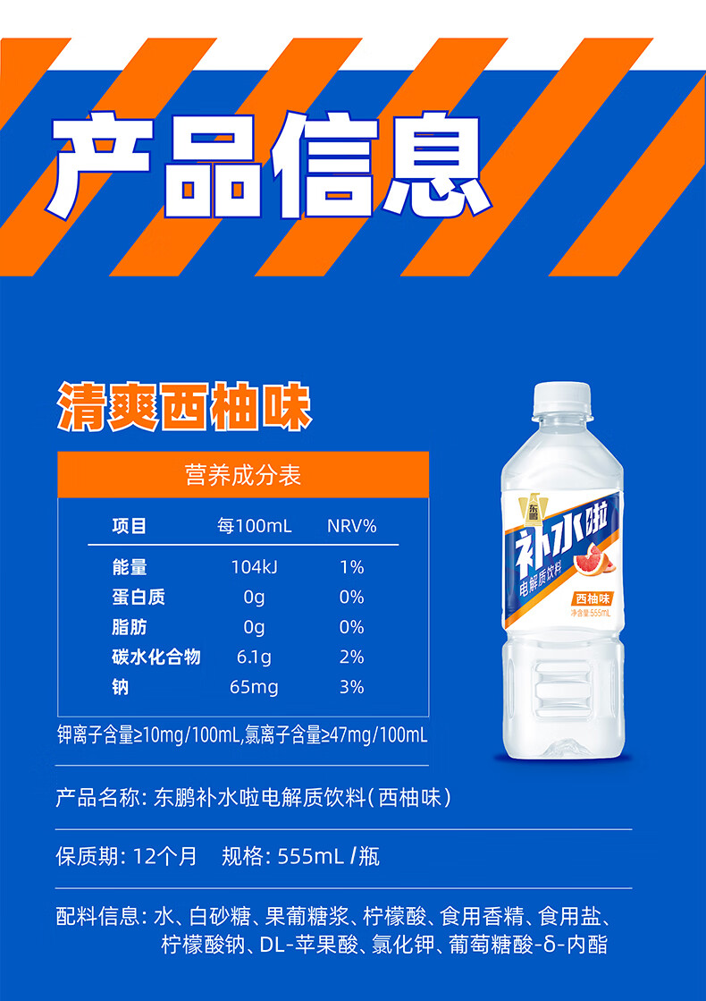 (特)东鹏特饮补水啦电解质水饮料555ml*24瓶整箱清爽柠檬味