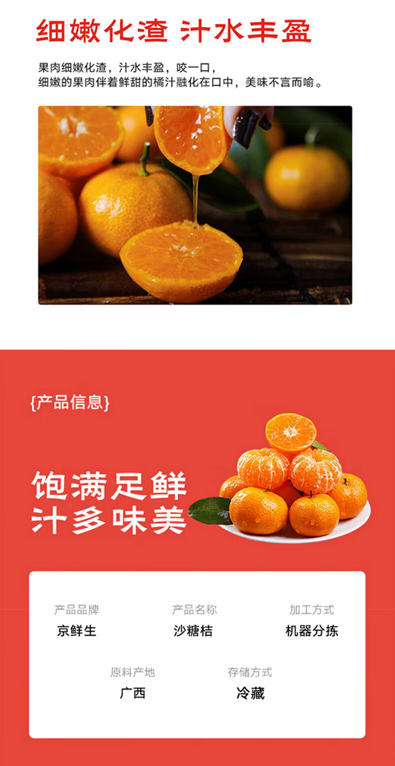 (特)京鲜生 砂糖橘/砂糖桔 5斤 生鲜水果
