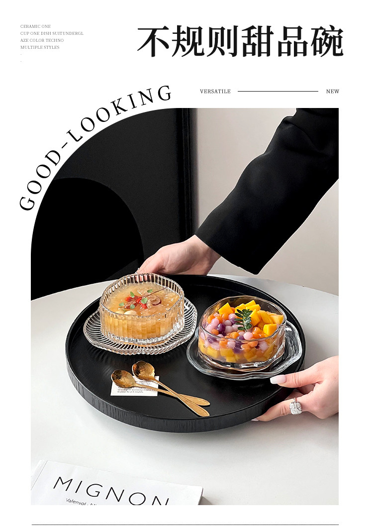 (特)ins风不规则甜品碗套装高颜值云朵玻璃碗碟