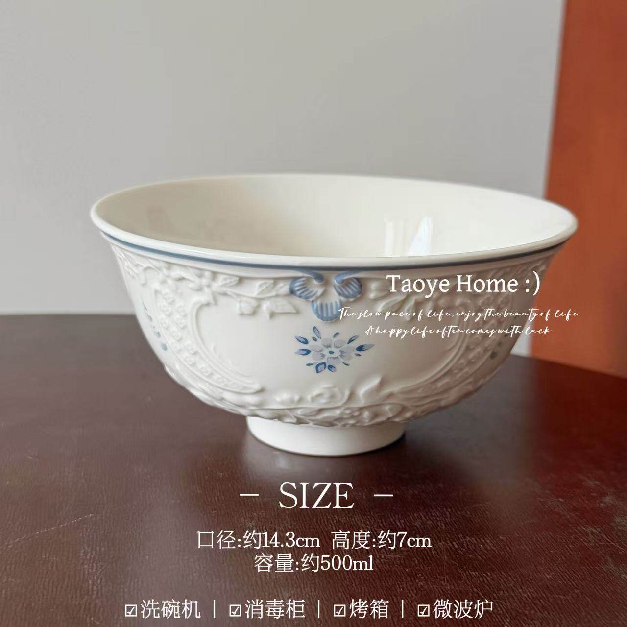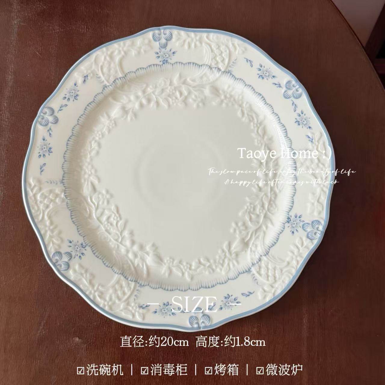 (特)法式高颜值花开半夏浮雕陶瓷碗家用菜盘子中古早餐西餐沙拉甜品盘
