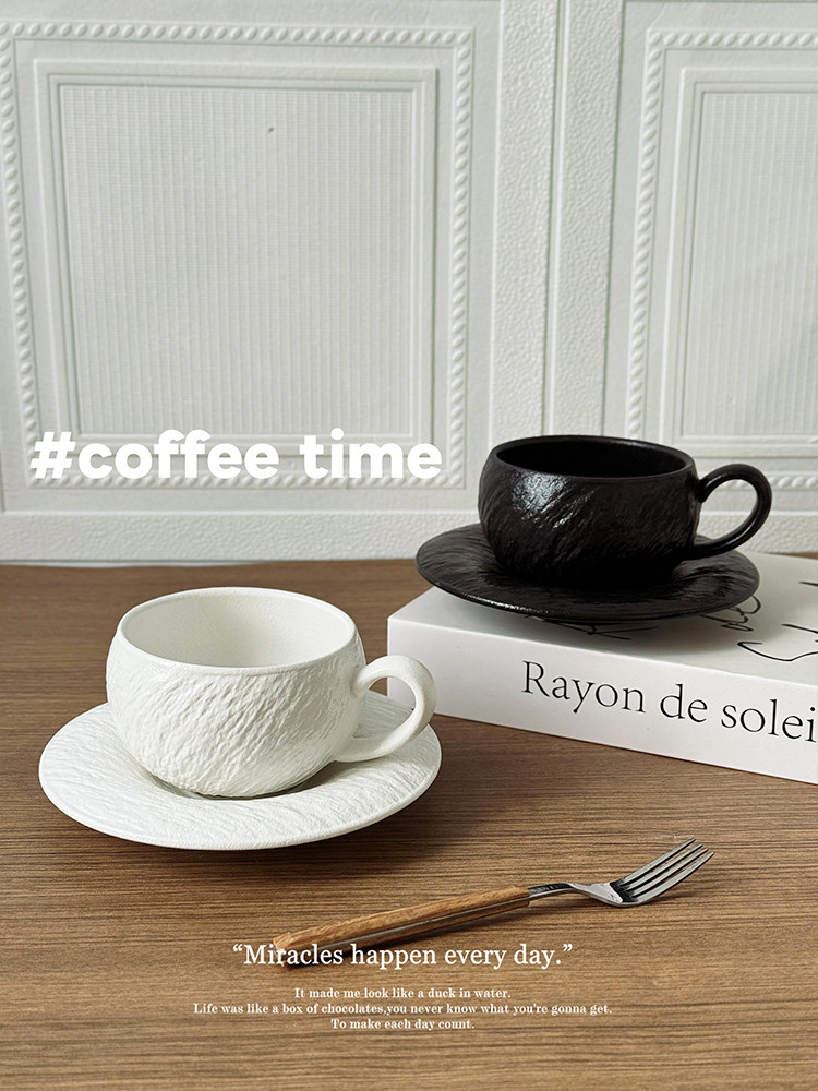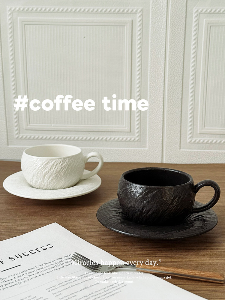(特)高级感黑白咖啡杯高档精致陶瓷咖啡杯杯碟套装下午茶拉花拿铁杯子
