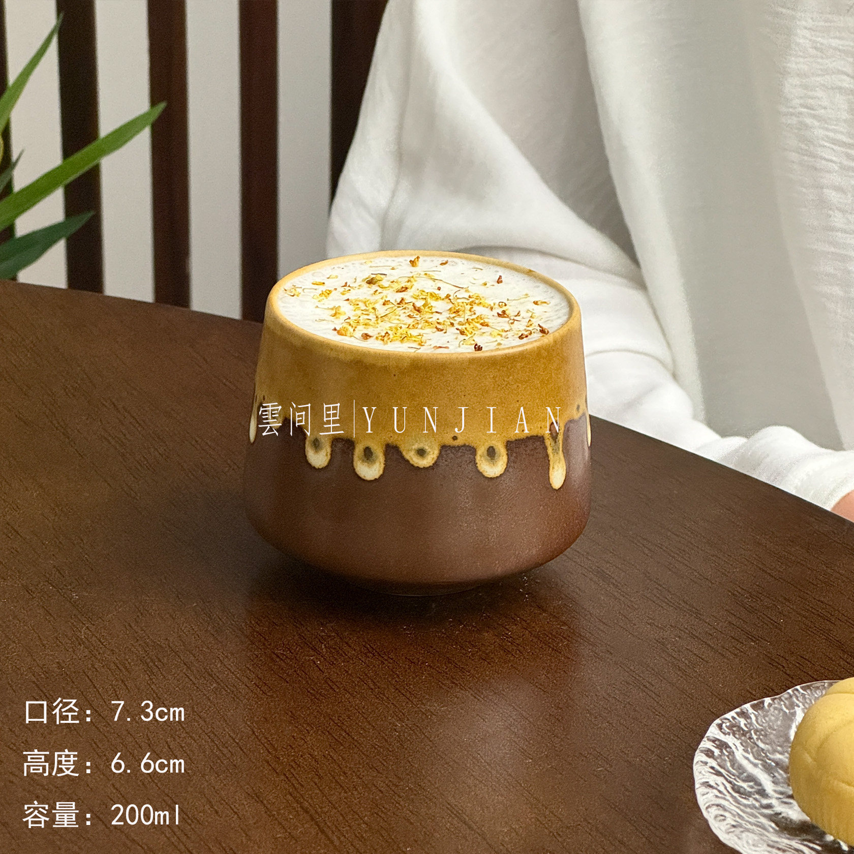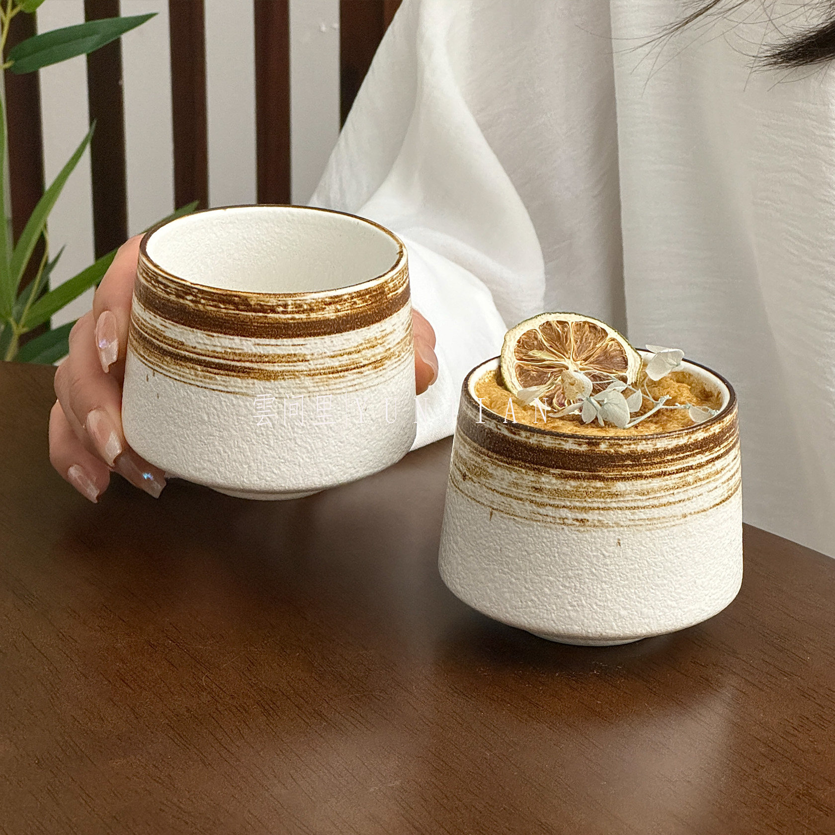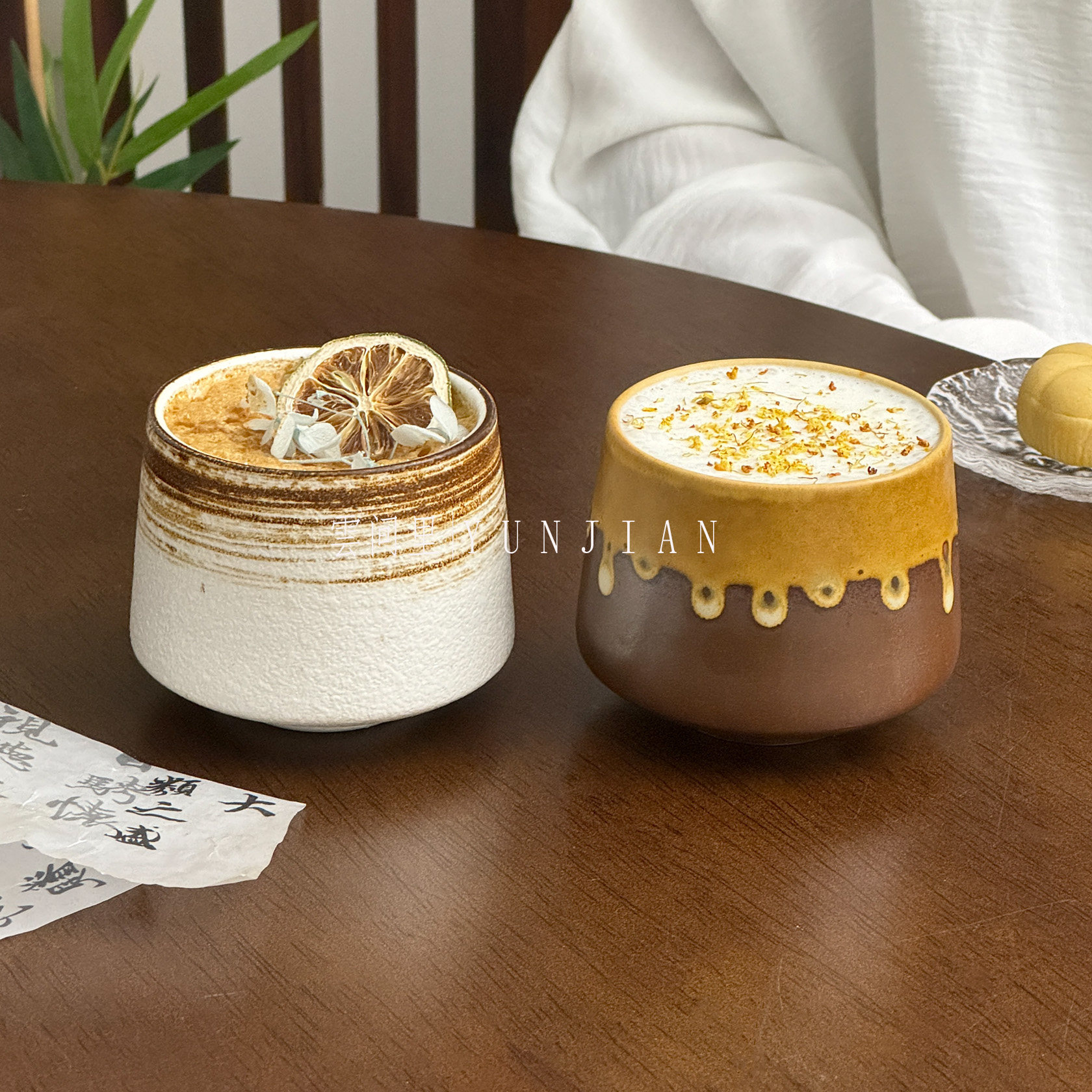 (特)中古粗陶咖啡杯创意手绘陶瓷杯马克杯冰美式拿铁杯子功夫茶杯水杯