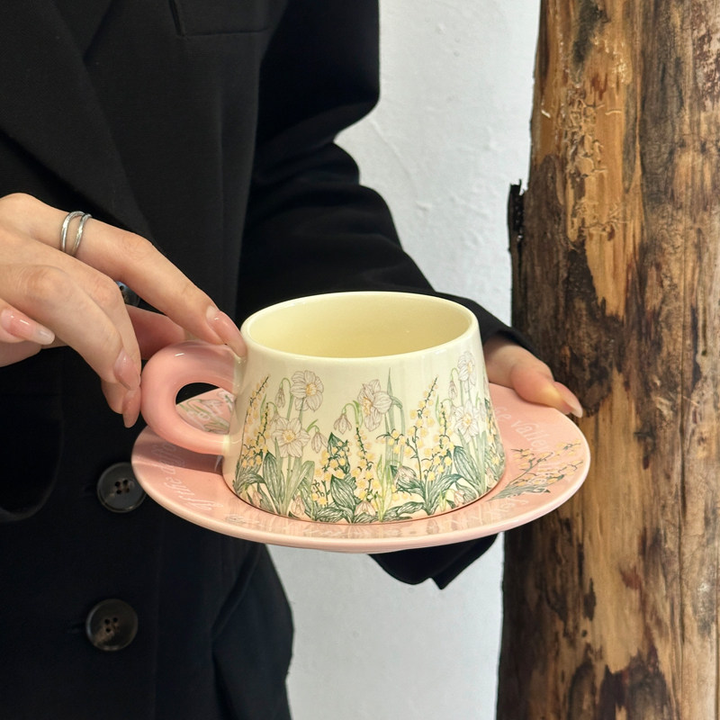 (特)复古轻奢女生陶瓷杯高颜值咖啡杯碟办公室水杯家用马克杯子伴手礼