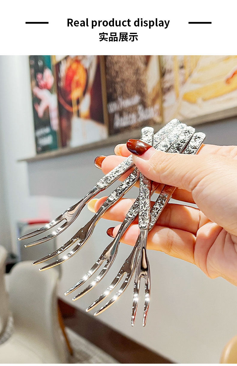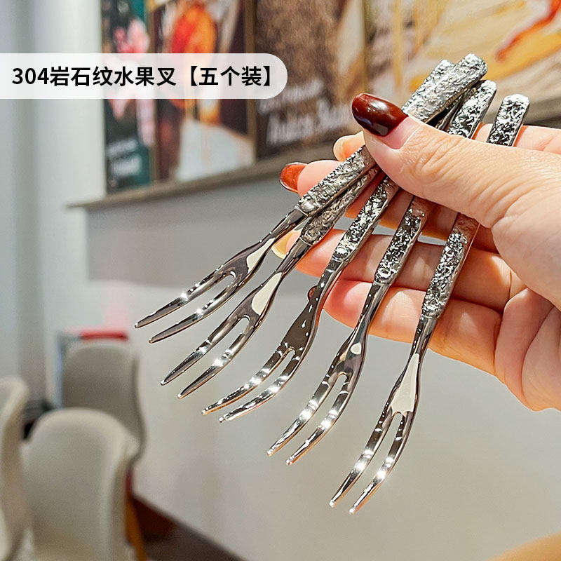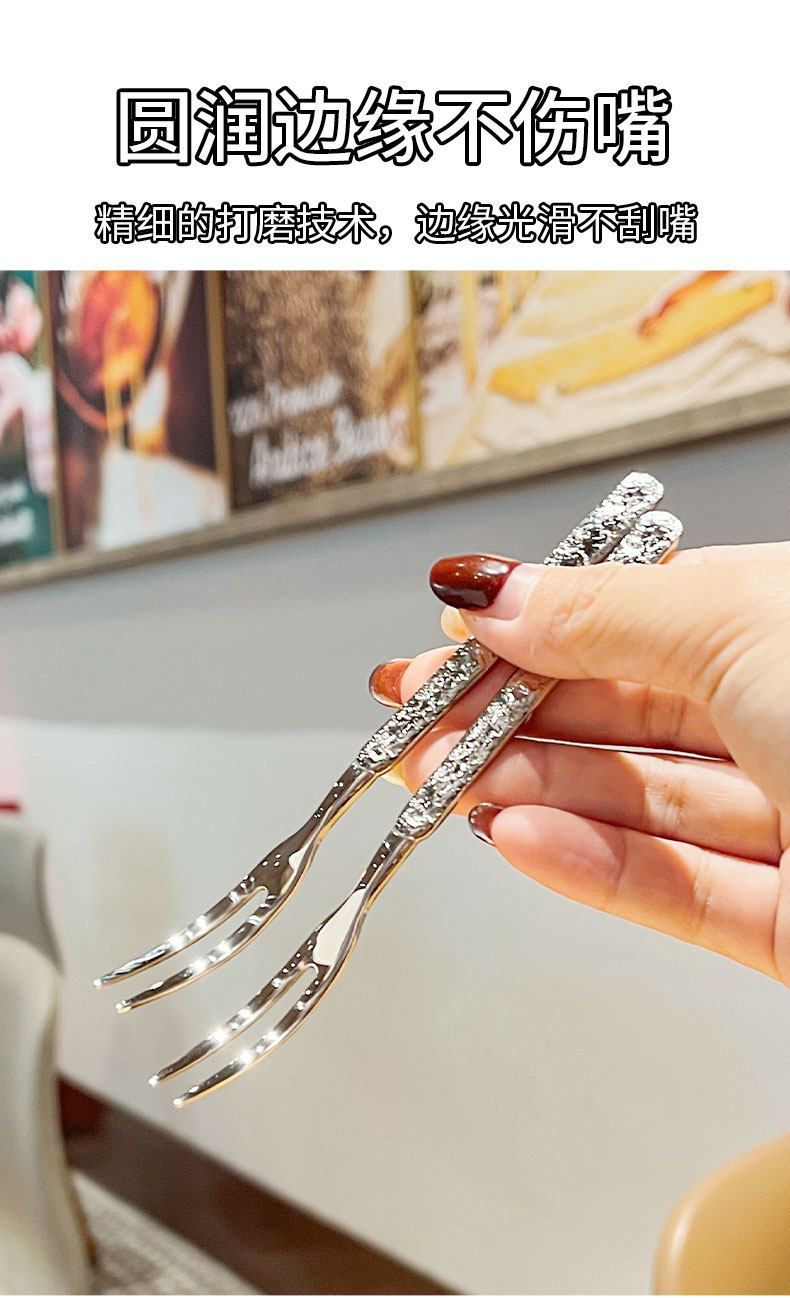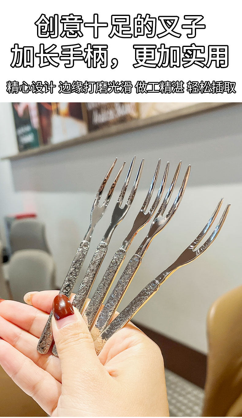 (特)304不锈钢水果叉子轻奢高级感水果签餐厅蛋糕甜品叉子创意月饼叉